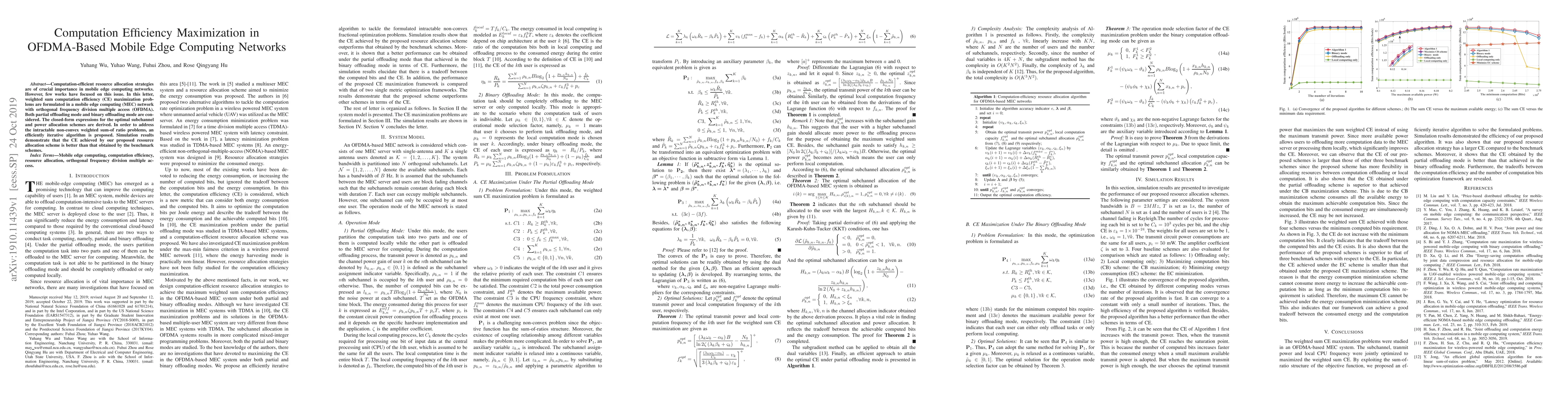 This paper proposes computation efficiency maximization strategies for OFDMA-based mobile edge computing networks, deriving optimal subchannel and power allocation schemes. An iterative algorithm addresses non-convex optimization problems, achieving better computation efficiency than benchmark schemes.