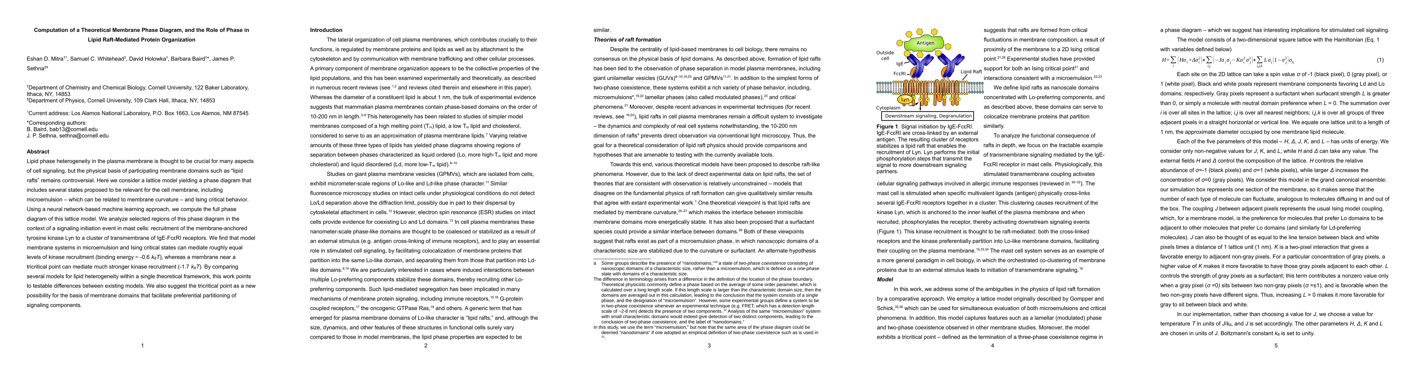 Lipid phase heterogeneity in the plasma membrane is thought to be crucial for many aspects of cell signaling, but the physical basis of participating membrane domains such as "lipid rafts" remains controversial. Here we consider a lattice model yielding a phase diagram that includes several states proposed to be relevant for the cell membrane, including microemulsion - which can be related to membrane curvature - and Ising critical behavior. Using a neural network-based machine learning approach, we compute the full phase diagram of this lattice model. We analyze selected regions of this phase diagram in the context of a signaling initiation event in mast cells: recruitment of the membrane-anchored tyrosine kinase Lyn to a cluster of transmembrane of IgE-Fc{\epsilon}RI receptors. We find that model membrane systems in microemulsion and Ising critical states can mediate roughly equal levels of kinase recruitment (binding energy ~ -0.6 kBT), whereas a membrane near a tricritical point can mediate much stronger kinase recruitment (-1.7 kBT). By comparing several models for lipid heterogeneity within a single theoretical framework, this work points to testable differences between existing models. We also suggest the tricritical point as a new possibility for the basis of membrane domains that facilitate preferential partitioning of signaling components.
