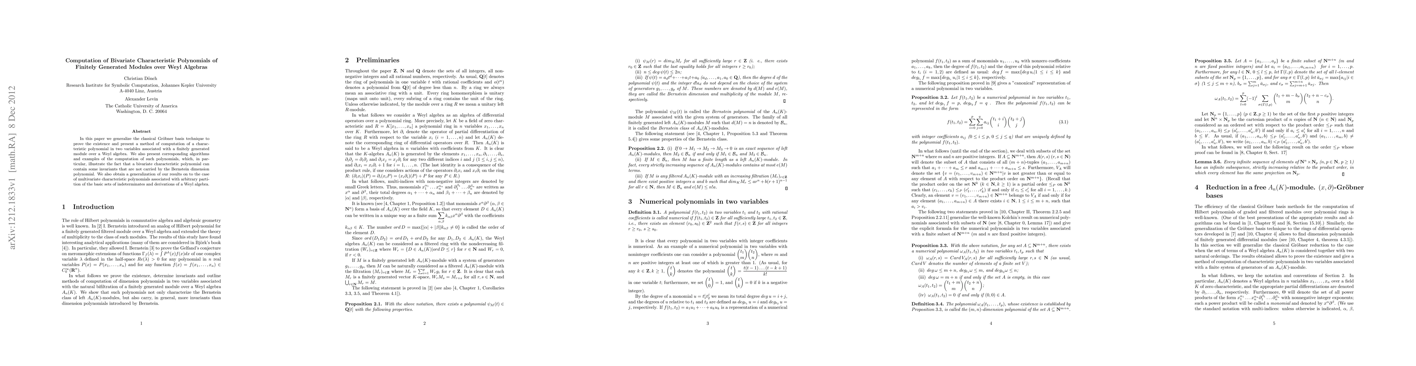 This paper develops a method for computing bivariate characteristic polynomials for finitely generated modules over Weyl algebras, generalizing Groebner basis techniques. The proposed algorithms reveal invariants in the bivariate polynomials that differ from those in the Bernstein dimension polynomial, with applications to $D$-module isomorphism and classification problems in differential algebraic groups.