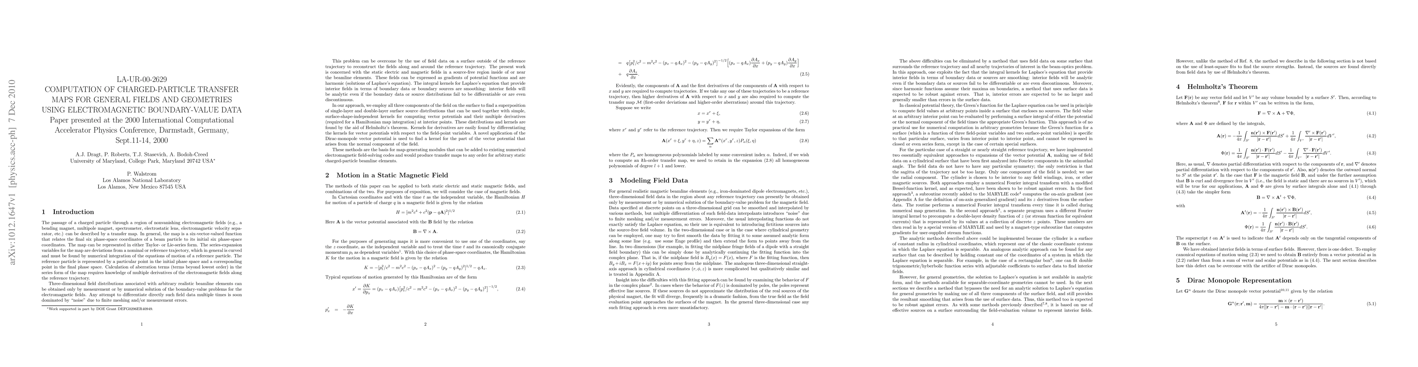 Three-dimensional field distributions from realistic beamline elements can be obtained only by measurement or by numerical solution of a boundary-value problem. In numerical charged-particle map generation, fields along a reference trajectory are differentiated multiple times. Any attempt to differentiate directly such field data multiple times is soon dominated by "noise" due to finite meshing and/or measurement errors. This problem can be overcome by the use of field data on a surface outside of the reference trajectory to reconstruct the fields along and around the reference trajectory. The integral kernels for Laplace's equation that provide interior fields in terms of boundary data or boundary sources are smoothing: interior fields will be analytic even if the boundary data or source distributions fail to be differentiable or are even discontinuous. In our approach, we employ all three components of the field on the surface to find a superposition of single-layer and double-layer surface source distributions that can be used together with simple, surface-shape-independent kernels for computing vector potentials and their multiple derivatives (required for a Hamiltonian map integration) at interior points. These distributions and kernels are found by the aid of Helmholtz's theorem (or equivalently, by Green's theorem). A novel application of the Dirac-monopole vector potential is used to find a kernel for the single-layer distribution. These methods are the basis for map-generating modules that can be added to existing numerical electromagnetic field-solving codes and would produce transfer maps to any order for arbitrary static charged-particle beamline elements.