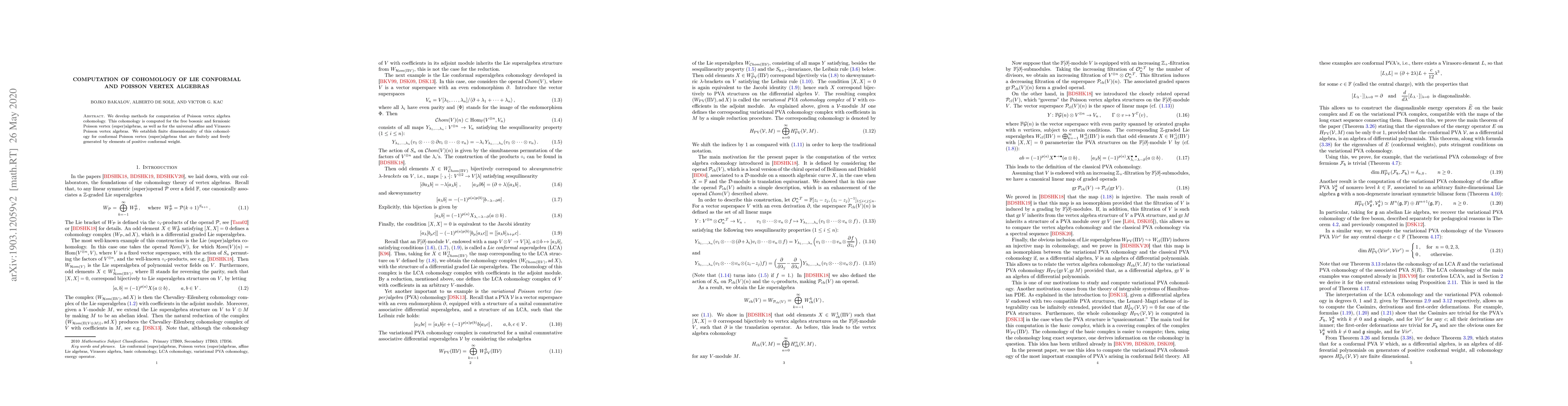 Summary: This paper introduces computational methods for Poisson vertex algebra cohomology, demonstrating finite dimensionality for conformal Poisson vertex algebras generated by elements of positive weight, and applies these methods to free bosonic, fermionic, affine, and Virasoro algebras.
