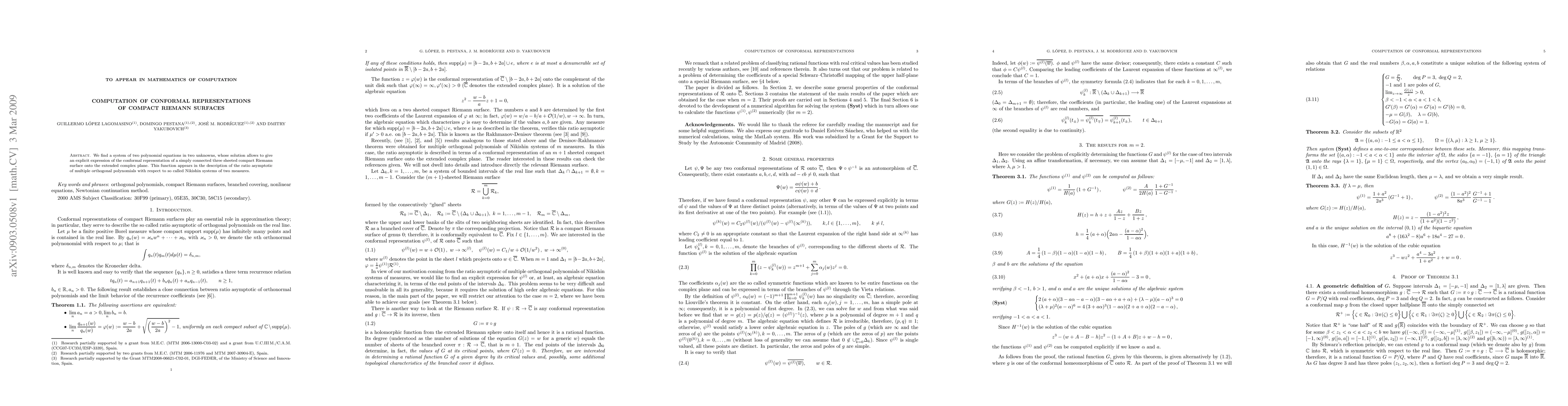 We find a system of two polynomial equations in two unknowns, whose solution allows to give an explicit expression of the conformal representation of a simply connected three sheeted compact Riemann surface onto the extended complex plane. This function appears in the description of the ratio asymptotic of multiple orthogonal polynomials with respect to so called Nikishin systems of two measures.