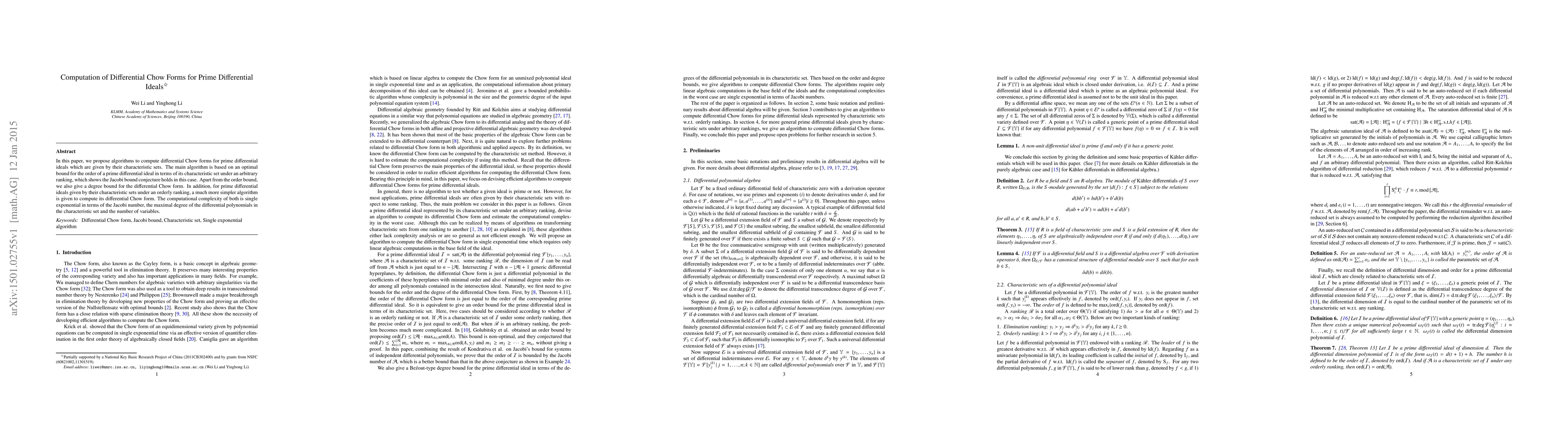This paper presents algorithms for computing differential Chow forms for prime differential ideals defined by their characteristic sets. It introduces an optimal bound for the order of such ideals and a simpler algorithm for orderly-ranked ideals, with computational complexity being single exponential in terms of key parameters.