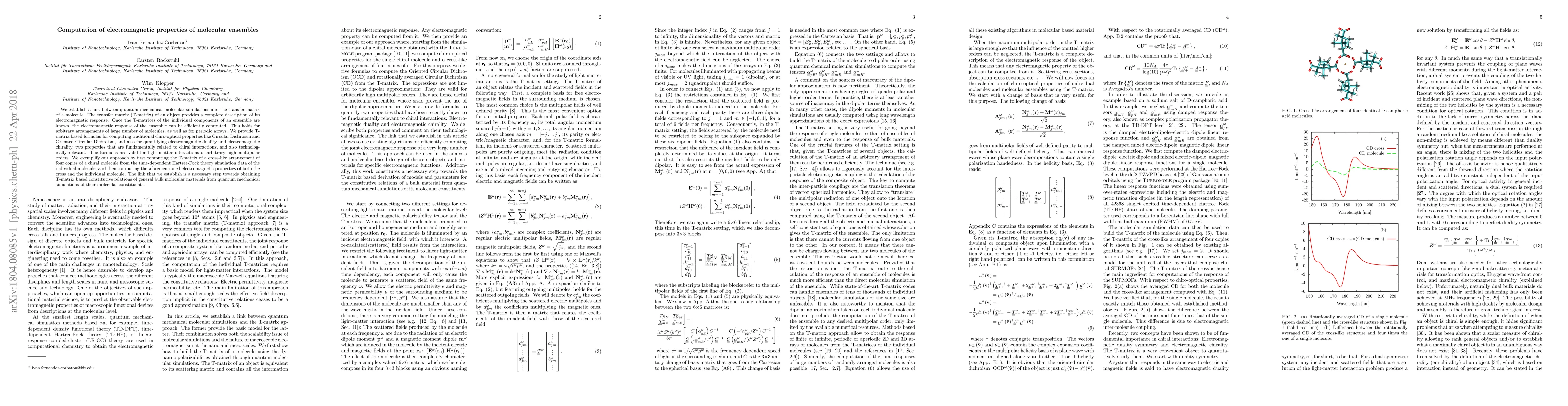 The paper establishes a link between quantum mechanical molecular simulations and the transfer matrix (T-matrix) of a molecule, providing a complete description of its electromagnetic response. The T-matrices of individual components of an ensemble are used to compute the electromagnetic response of the ensemble efficiently, applicable for arbitrary arrangements and periodic arrays.