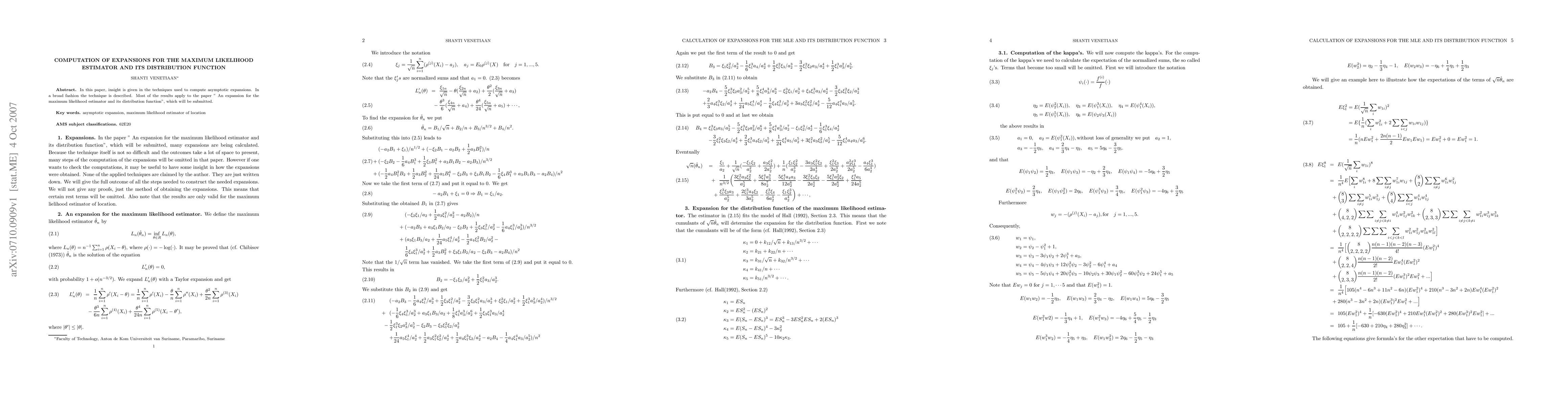 This paper outlines methods for computing asymptotic expansions of the maximum likelihood estimator and its distribution function, providing a broad description of the technique that will be detailed further in a forthcoming submission.