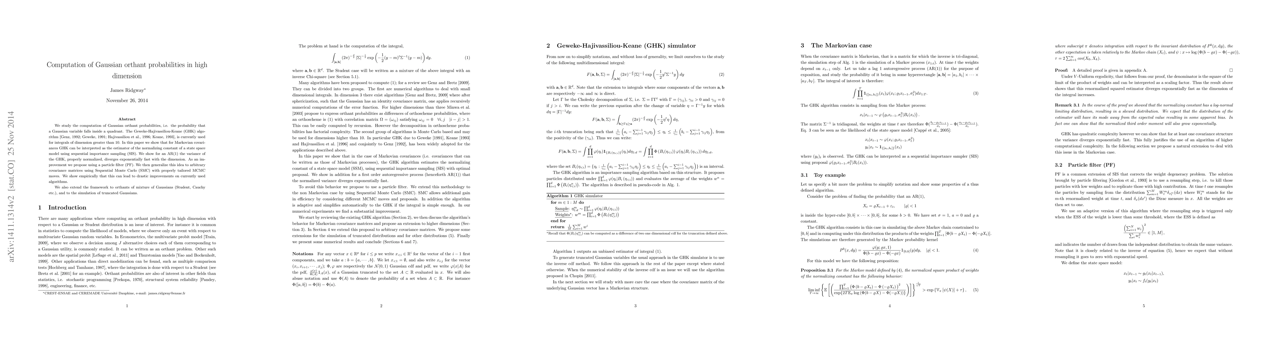 This paper investigates the computation of Gaussian orthant probabilities and proposes improvements over the GHK algorithm for high-dimensional integrals. It introduces a particle filter approach using Sequential Monte Carlo (SMC) for better performance, and extends the method to mixture of Gaussians and truncated Gaussian simulations.