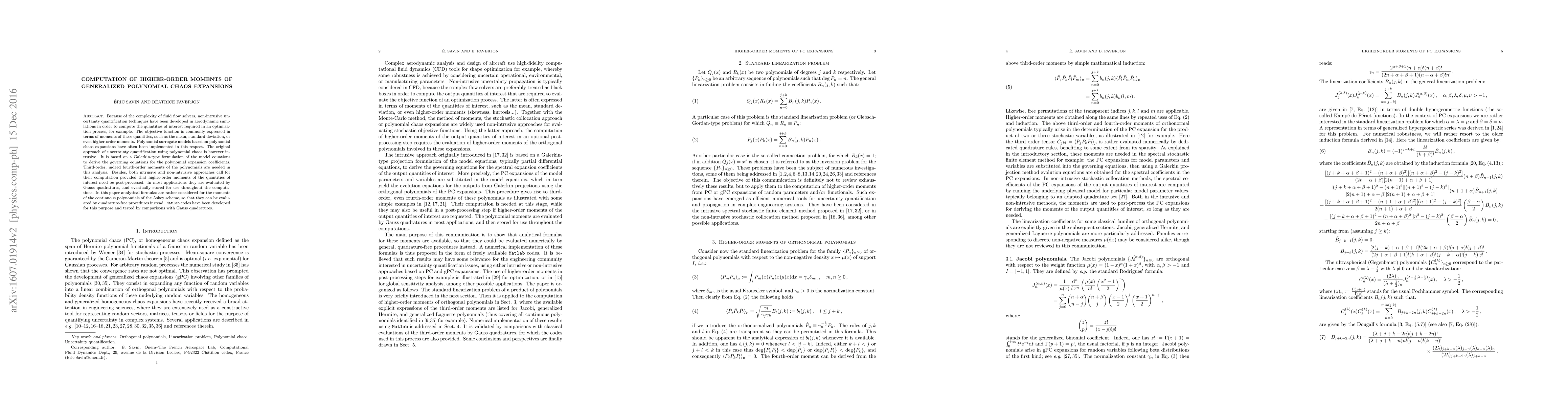 This paper develops analytical formulas for computing higher-order moments of generalized polynomial chaos expansions, offering a quadrature-free alternative to traditional Gauss quadrature methods. The proposed method is implemented in Matlab and validated through comparisons with traditional methods.