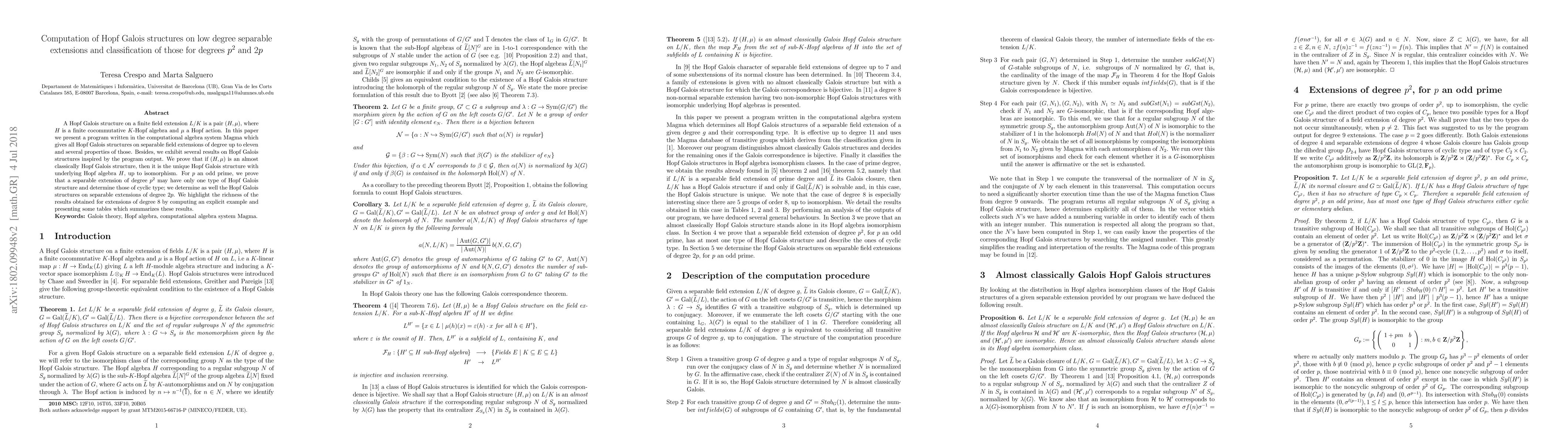 This paper uses Magma to compute Hopf Galois structures for separable field extensions up to degree eleven, focusing on degree $p^2$ and $2p$ for odd primes $p$. It proves the uniqueness of almost classically Hopf Galois structures and determines the structures for extensions of these specific degrees.