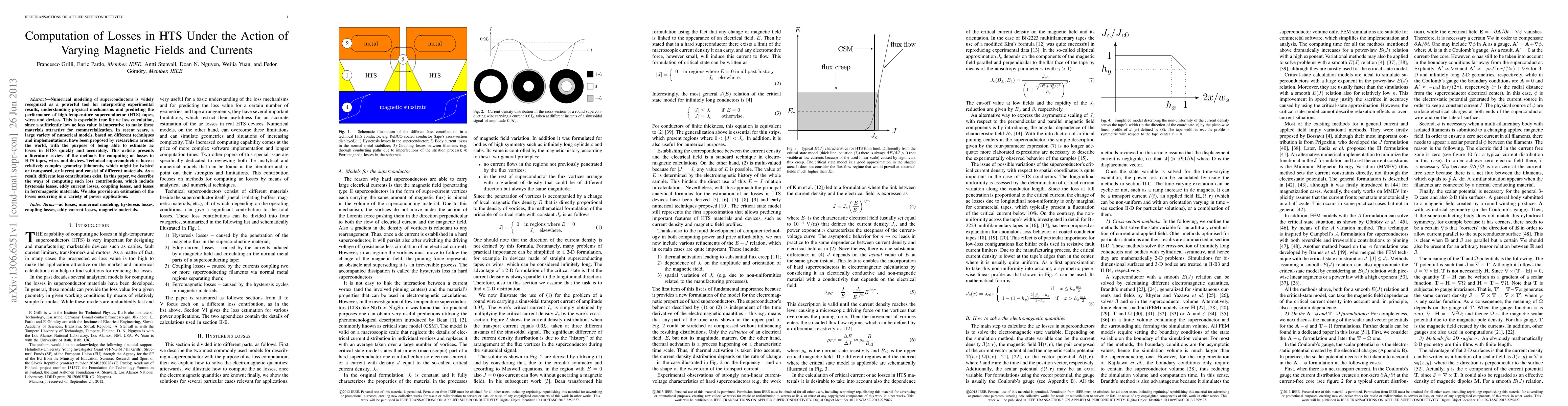 This paper reviews methods for calculating ac losses in high-temperature superconductor (HTS) devices, including hysteresis, eddy current, and coupling losses, to improve their commercialization prospects.