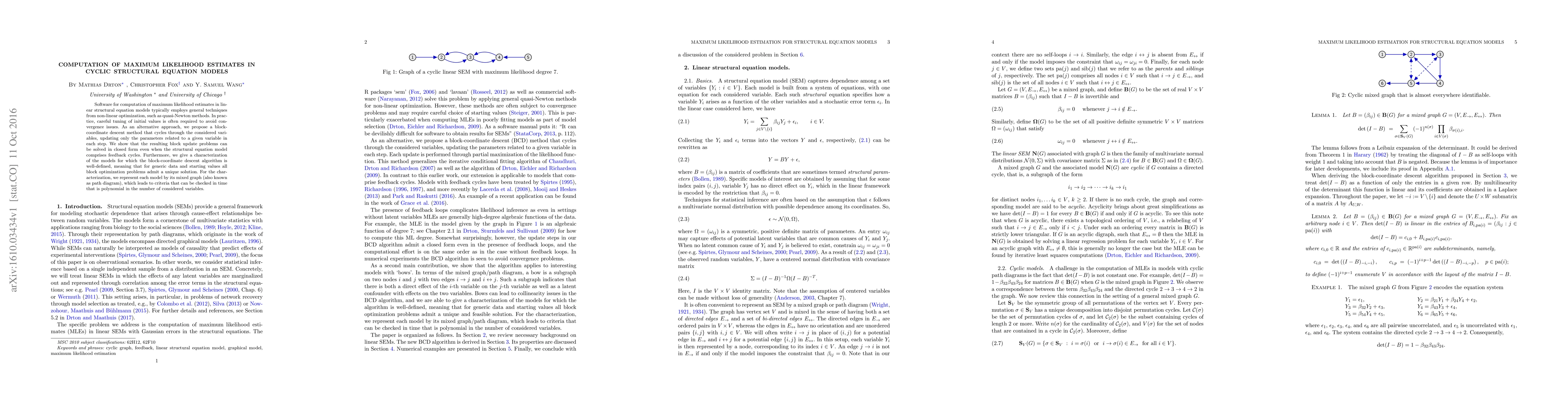 Researchers propose a new algorithm for computing maximum likelihood estimates in cyclic structural equation models, which can solve complex feedback cycles in closed form and provides polynomial-time criteria to check model validity.