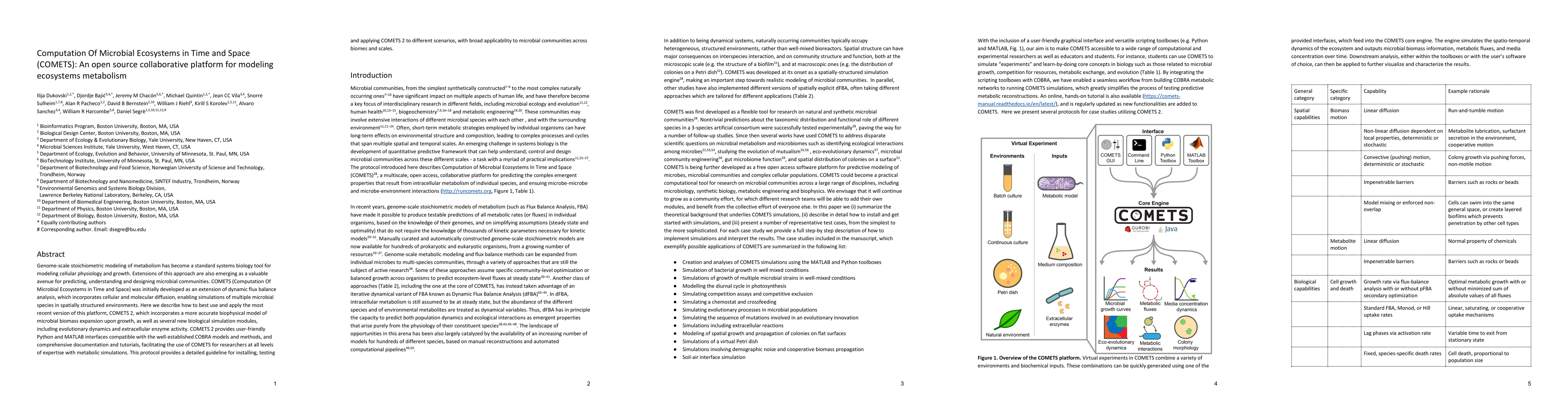 COMETS 2 is an open-source platform for modeling microbial ecosystems' metabolism, extending dynamic flux balance analysis to simulate multiple species in spatially structured environments. It offers improved biophysical models and new modules for evolutionary dynamics and extracellular enzyme activity, with user-friendly interfaces and comprehensive documentation.