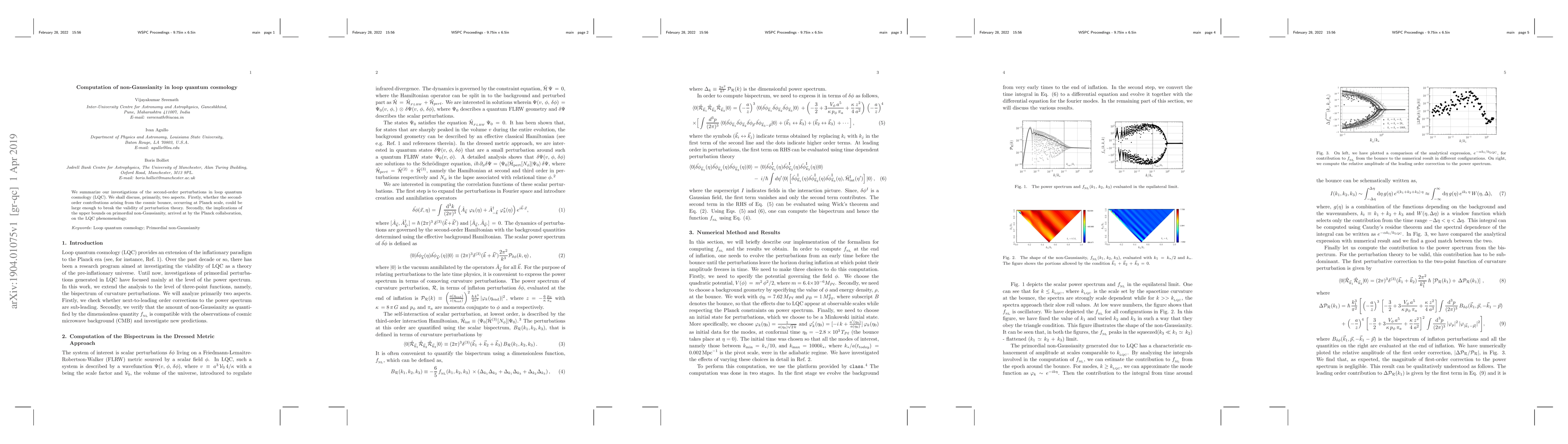 We summarize our investigations of the second-order perturbations in loop quantum cosmology (LQC). We shall discuss, primarily, two aspects. Firstly, whether the second-order contributions arising from the cosmic bounce, occurring at Planck scale, could be large enough to break the validity of perturbation theory. Secondly, the implications of the upper bounds on primordial non-Gaussianity, arrived at by the Planck collaboration, on the LQC phenomenology.