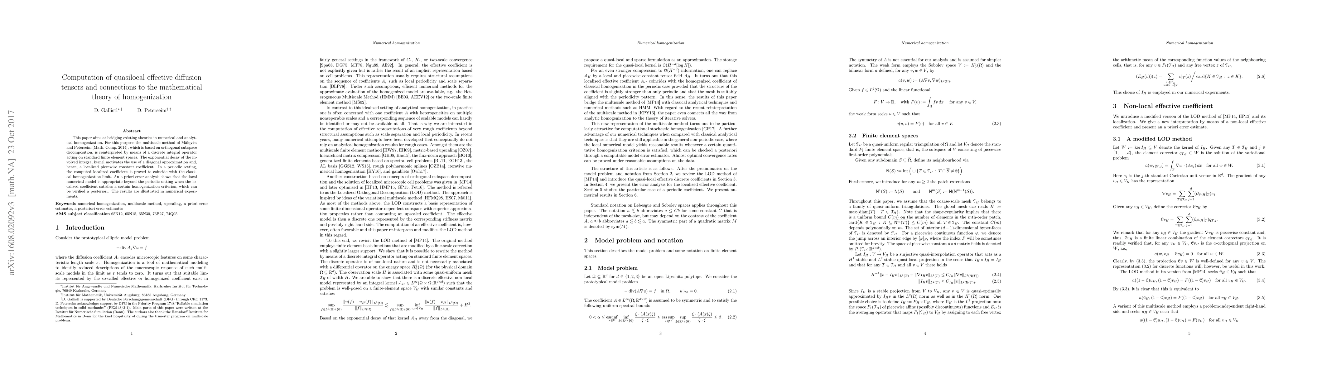 This paper aims at bridging existing theories in numerical and analytical homogenization. For this purpose the multiscale method of M{\aa}lqvist and Peterseim [Math. Comp. 2014], which is based on orthogonal subspace decomposition, is reinterpreted by means of a discrete integral operator acting on standard finite element spaces. The exponential decay of the involved integral kernel motivates the use of a diagonal approximation and, hence, a localized piecewise constant coefficient. In a periodic setting, the computed localized coefficient is proved to coincide with the classical homogenization limit. An a priori error analysis shows that the local numerical model is appropriate beyond the periodic setting when the localized coefficient satisfies a certain homogenization criterion, which can be verified a posteriori. The results are illustrated in numerical experiments.