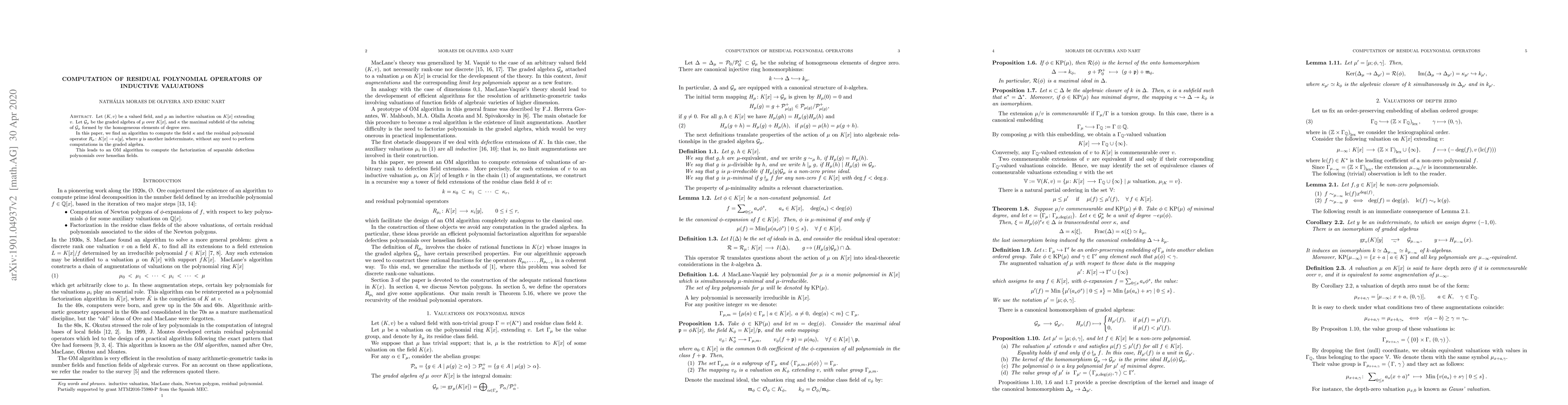 This paper presents an algorithm to compute the maximal subfield $\kappa$ and the residual polynomial operator $R_\mu$ for an inductive valuation $\mu$ on $K[x]$ over a valued field $(K,v)$, without resorting to computations in the graded algebra. This method facilitates the factorization of separable defectless polynomials over henselian fields.