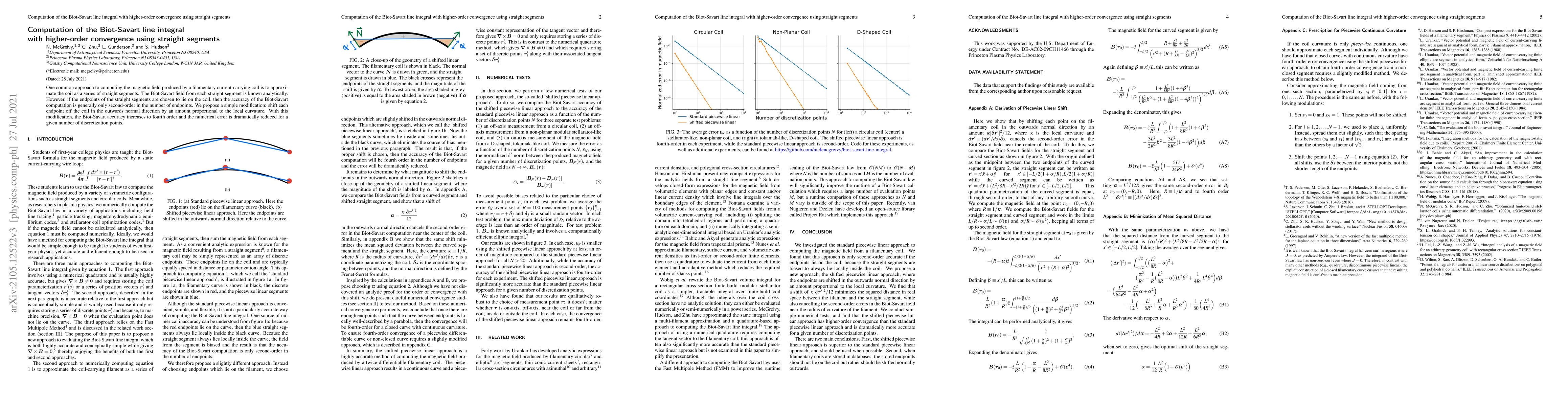 A method modification increases Biot-Savart field accuracy from second-order to fourth-order convergence by shifting coil endpoints off-center, reducing numerical error.