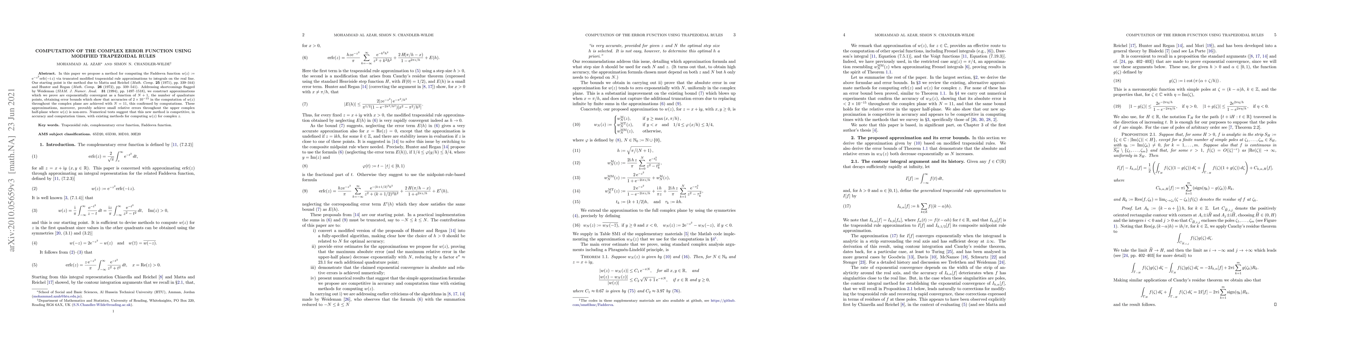 A new method for computing the Faddeeva function uses modified trapezoidal rules to achieve exponential convergence and accuracy of $2 imes 10^{-15}$ with just 11 quadrature points.