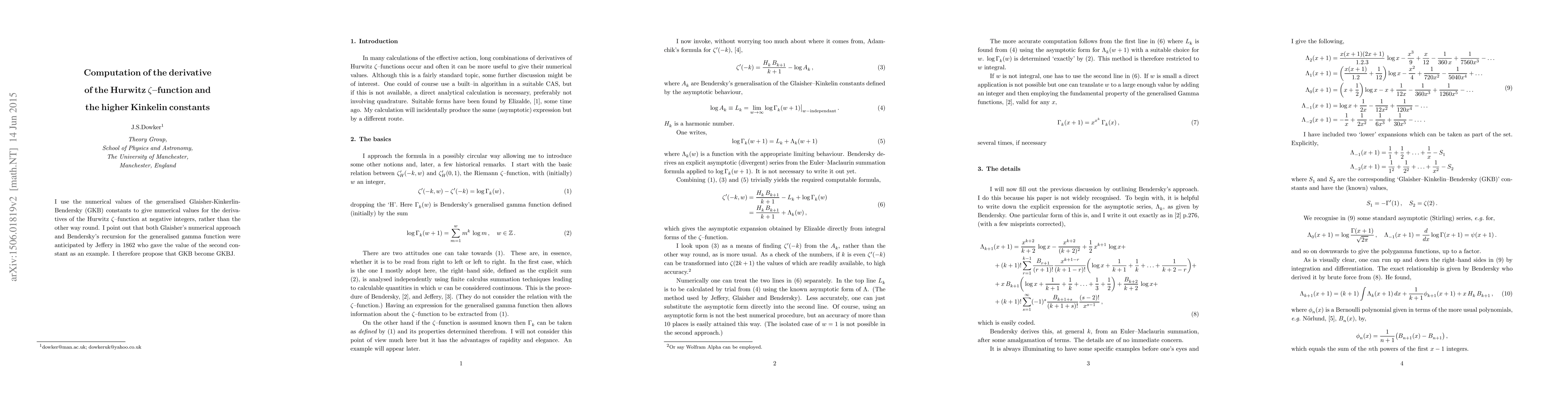 I use the numerical values of the generalised Glaisher-Kinkelin-Bendersky (GKB) constants to give numerical values for the derivatives of the Hurwitz zeta function at negative integers, rather than the other way round. I point out that both Glaisher's numerical approach and Bendersky's recursion for the generalised gamma function were anticipated by Jeffery in 1862 who gave the value of the second constant as an example. I therefore propose that GKB become GKBJ.