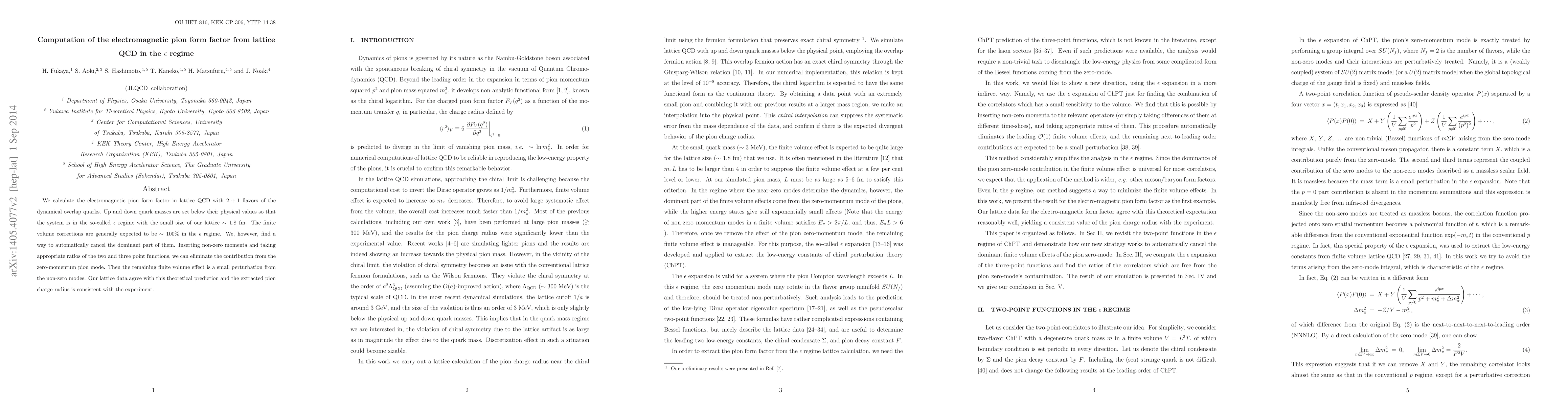 This paper calculates the electromagnetic pion form factor using lattice QCD in the epsilon regime, where quark masses are below physical values, leading to significant finite volume corrections. The authors develop a method to cancel these corrections, achieving agreement between lattice data and experimental results for the pion charge radius.