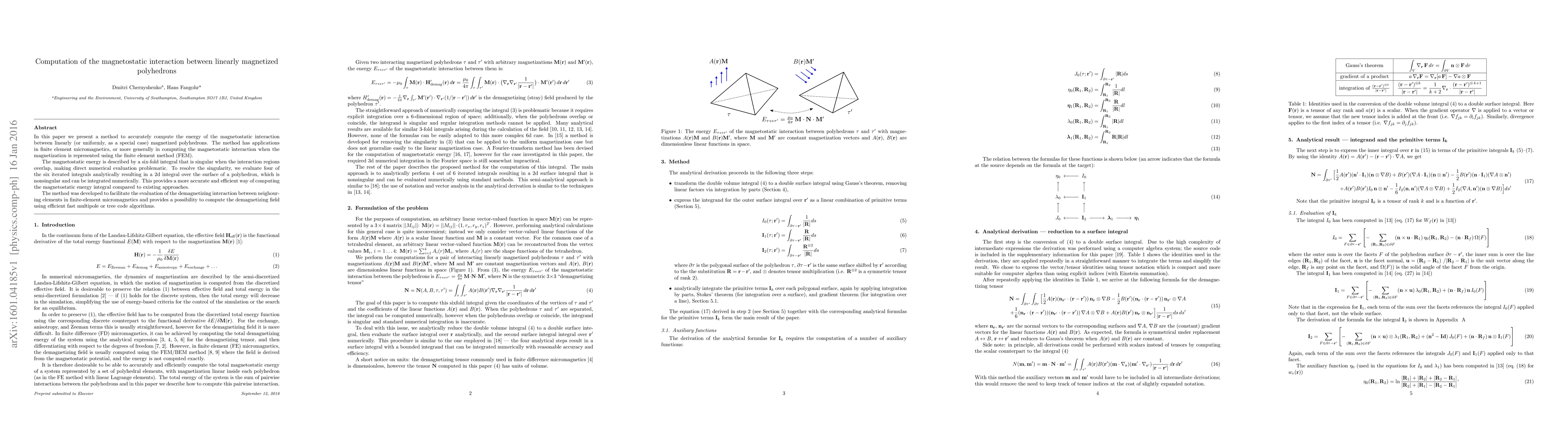 This paper introduces a method for accurately computing the magnetostatic interaction energy between linearly magnetized polyhedrons, resolving singularities through analytical evaluation of four out of six integrals, resulting in a more efficient and accurate numerical integration compared to existing approaches. The method is particularly useful for finite element micromagnetics and facilitates the computation of demagnetizing fields using fast multipole or tree code algorithms.