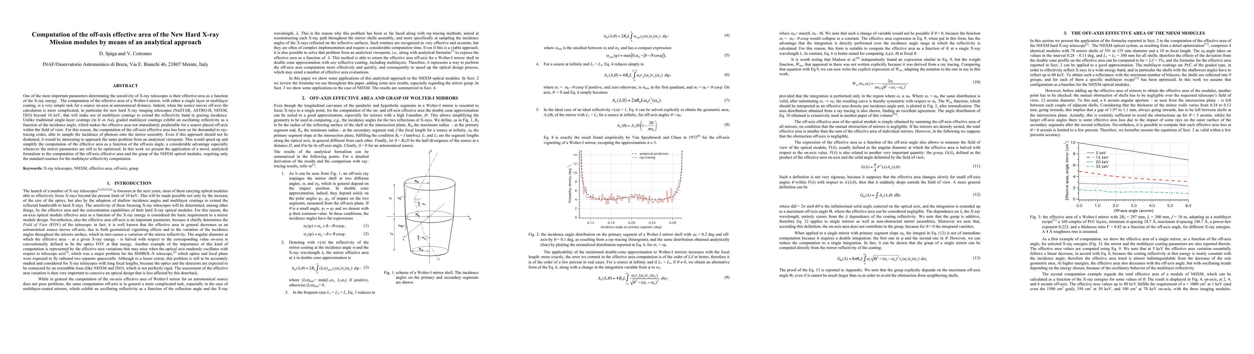 One of the most important parameters determining the sensitivity of X-ray telescopes is their effective area as a function of the X-ray energy. The computation of the effective area of a Wolter-I mirror, with either a single layer or multilayer coating, is a very simple task for a source on-axis at astronomical distance. Indeed, when the source moves off-axis the calculation is more complicated, in particular for new hard X-ray imaging telescopes (NuSTAR, ASTRO-H, NHXM, IXO) beyond 10 keV, that will make use of multilayer coatings to extend the reflectivity band in grazing incidence. Unlike traditional single-layer coatings (in Ir or Au), graded multilayer coatings exhibit an oscillating reflectivity as a function of the incidence angle, which makes the effective area not immediately predictable for a source placed off-axis within the field of view. For this reason, the computation of the off-axis effective area has been so far demanded to ray- tracing codes, able to sample the incidence of photons onto the mirror assembly. Even if this approach should not be disdained, it would be interesting to approach the same problem from an analytical viewpoint. This would speed up and simplify the computation of the effective area as a function of the off-axis angle, a considerable advantage especially whenever the mirror parameters are still to be optimized. In this work we present the application of a novel, analytical formalism to the computation of the off-axis effective area and the grasp of the NHXM optical modules, requiring only the standard routines for the multilayer reflectivity computation.