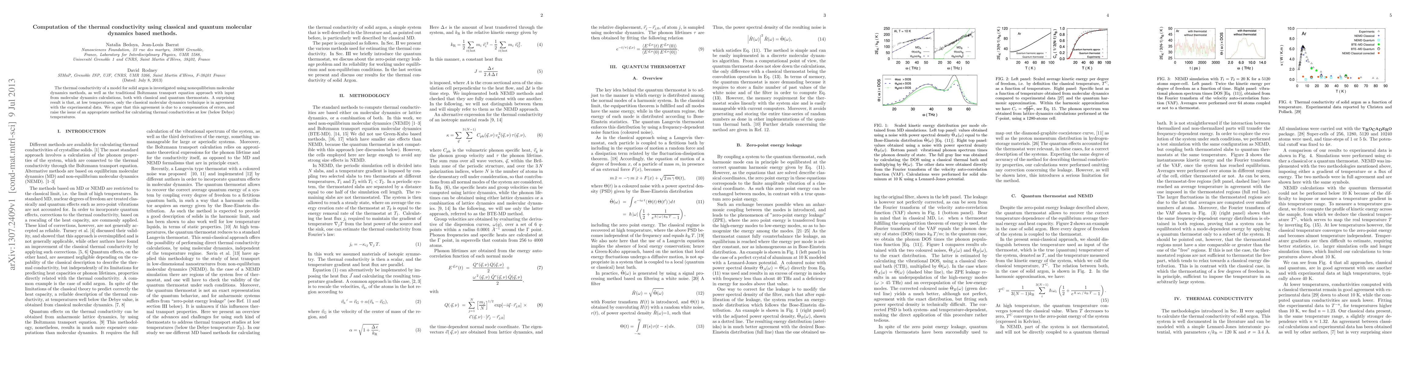 This paper investigates the thermal conductivity of solid argon using both classical and quantum molecular dynamics methods, finding that classical methods align with experimental data at low temperatures due to error compensation, while questioning the accuracy of quantum methods at such temperatures.