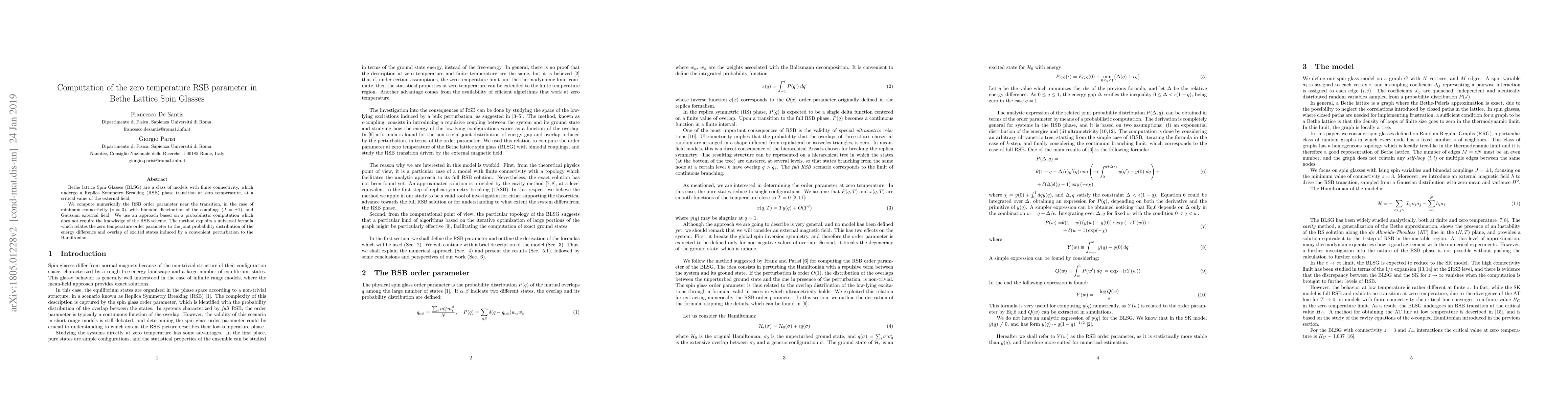 This paper numerically computes the zero temperature Replica Symmetry Breaking (RSB) order parameter in Bethe Lattice Spin Glasses with a coordination number of $z=3$ and binary couplings $J=\pm1$. The method employs a universal formula linking the order parameter to the joint probability distribution of energy gaps, derived via a numerical bulk perturbation.