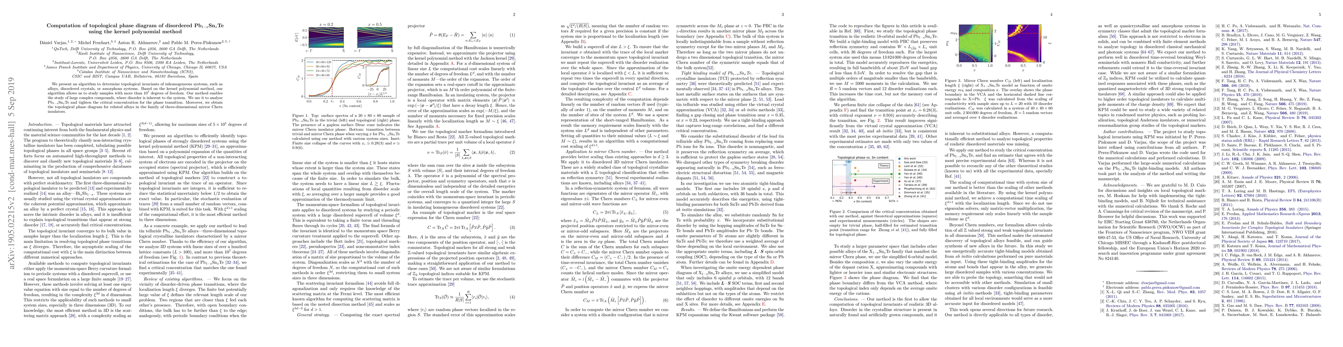 This paper introduces an algorithm based on the kernel polynomial method to compute topological invariants in disordered systems, enabling analysis of large compounds like Pb$_{1-x}$Sn$_{x}$Te, and refines the critical concentration for the topological phase transition in this material.