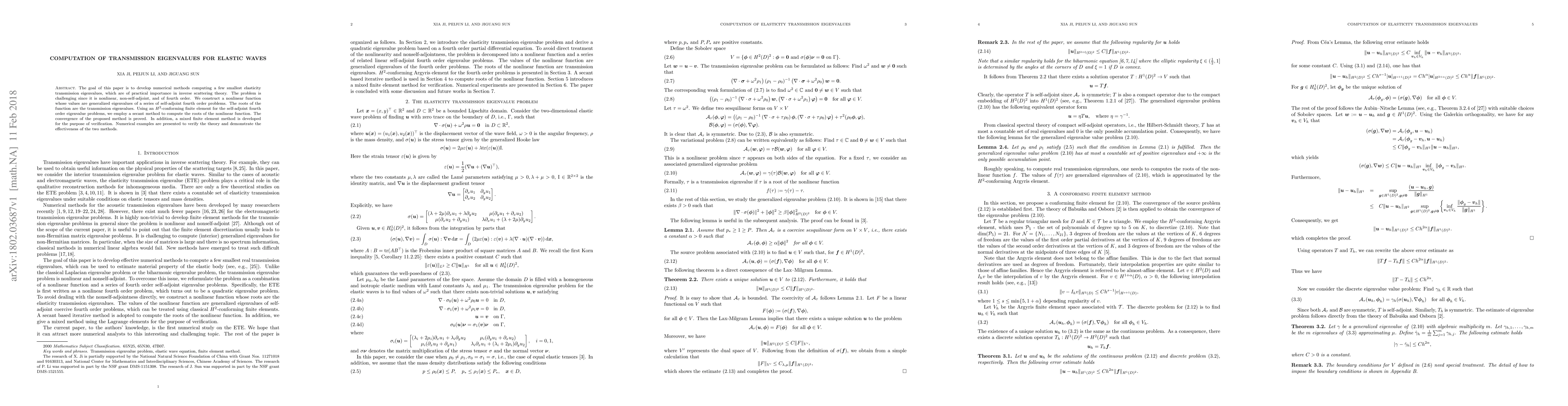 This paper develops a numerical method to compute transmission eigenvalues for elastic waves using a nonlinear function derived from self-adjoint fourth-order problems, and verifies its effectiveness with mixed finite element methods.
