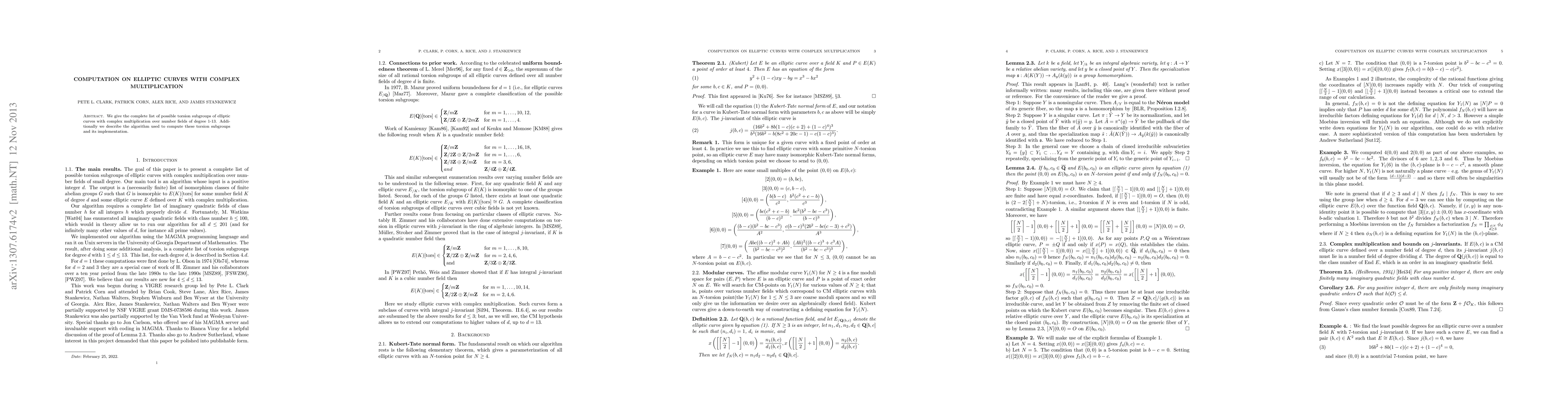Summary: This paper provides a comprehensive list of torsion subgroups for elliptic curves with complex multiplication over number fields of degree 1-13, alongside detailing the algorithm and its implementation used to compute these subgroups.