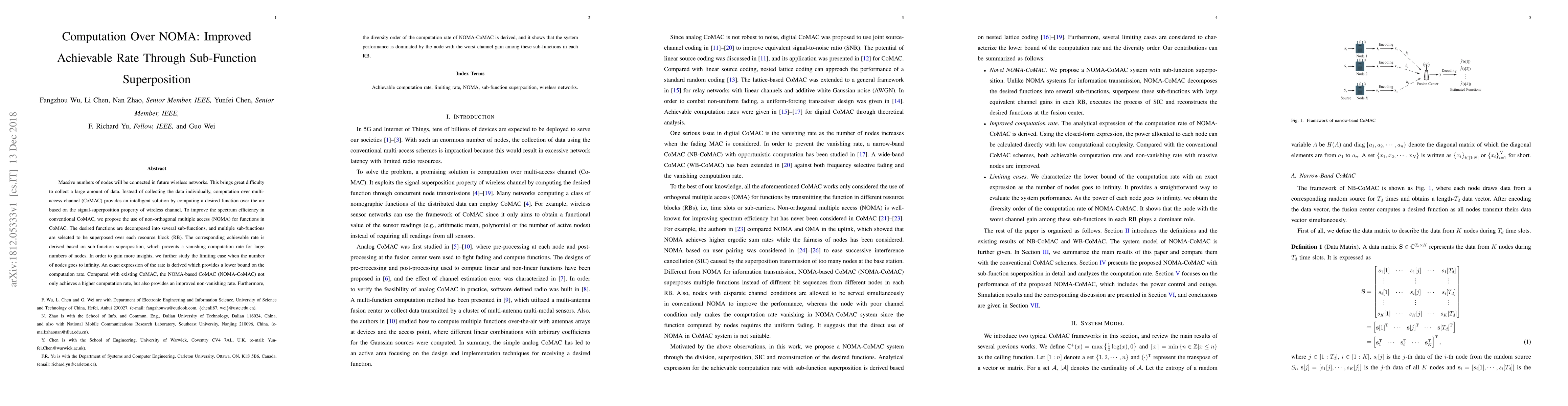 Massive numbers of nodes will be connected in future wireless networks. This brings great difficulty to collect a large amount of data. Instead of collecting the data individually, computation over multi-access channel (CoMAC) provides an intelligent solution by computing a desired function over the air based on the signal-superposition property of wireless channel. To improve the spectrum efficiency in conventional CoMAC, we propose the use of non-orthogonal multiple access (NOMA) for functions in CoMAC. The desired functions are decomposed into several sub-functions, and multiple sub-functions are selected to be superposed over each resource block (RB). The corresponding achievable rate is derived based on sub-function superposition, which prevents a vanishing computation rate for large numbers of nodes. In order to gain more insights, we further study the limiting case when the number of nodes goes to infinity. An exact expression of the rate is derived which provides a lower bound on the computation rate. Compared with existing CoMAC, the NOMA-based CoMAC (NOMA-CoMAC) not only achieves a higher computation rate, but also provides an improved non-vanishing rate. Furthermore, the diversity order of the computation rate of NOMA-CoMAC is derived, and it shows that the system performance is dominated by the node with the worst channel gain among these sub-functions in each RB.