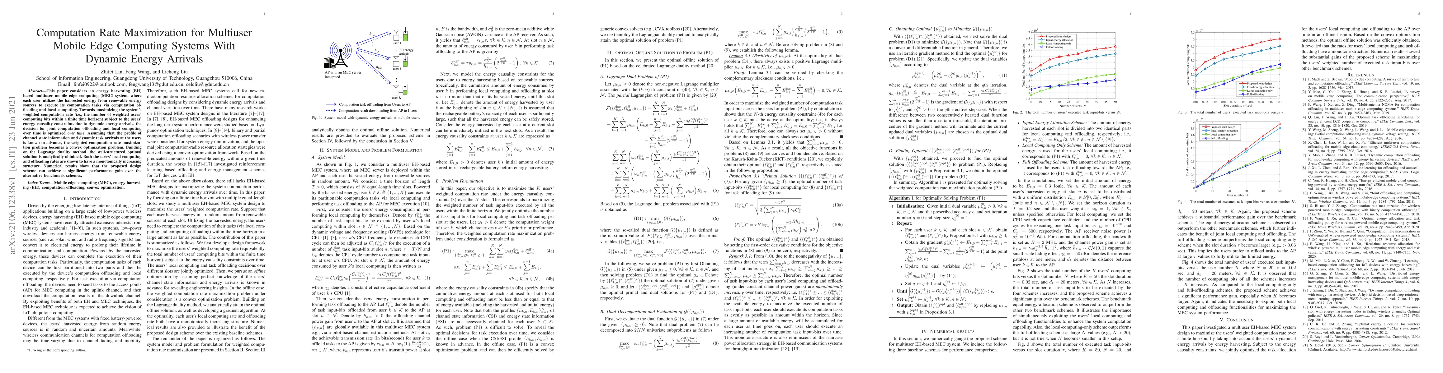 This paper optimizes joint computation offloading and local computing in an energy harvesting-based multiuser mobile edge computing system to maximize the weighted computation rate under dynamic energy arrivals. The optimal solution is derived using Lagrange duality, demonstrating significant performance gains over benchmark schemes.