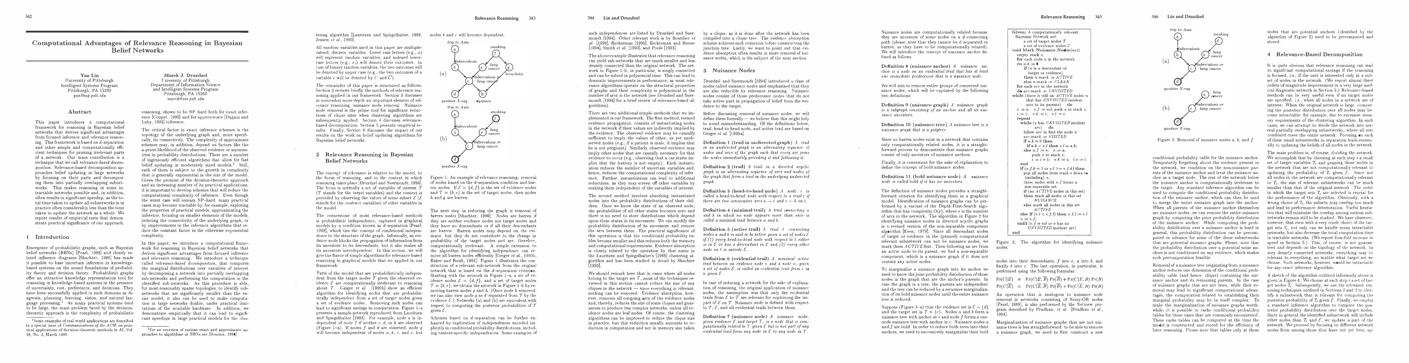 This paper proposes a computational framework for Bayesian belief networks that leverages relevance reasoning and focused inference to efficiently prune irrelevant parts. The key contribution is a relevance-based decomposition technique that breaks large networks into manageable subnetworks, enabling feasible reasoning and often resulting in significant speedups. Empirical tests validate the practical effectiveness of this approach.
