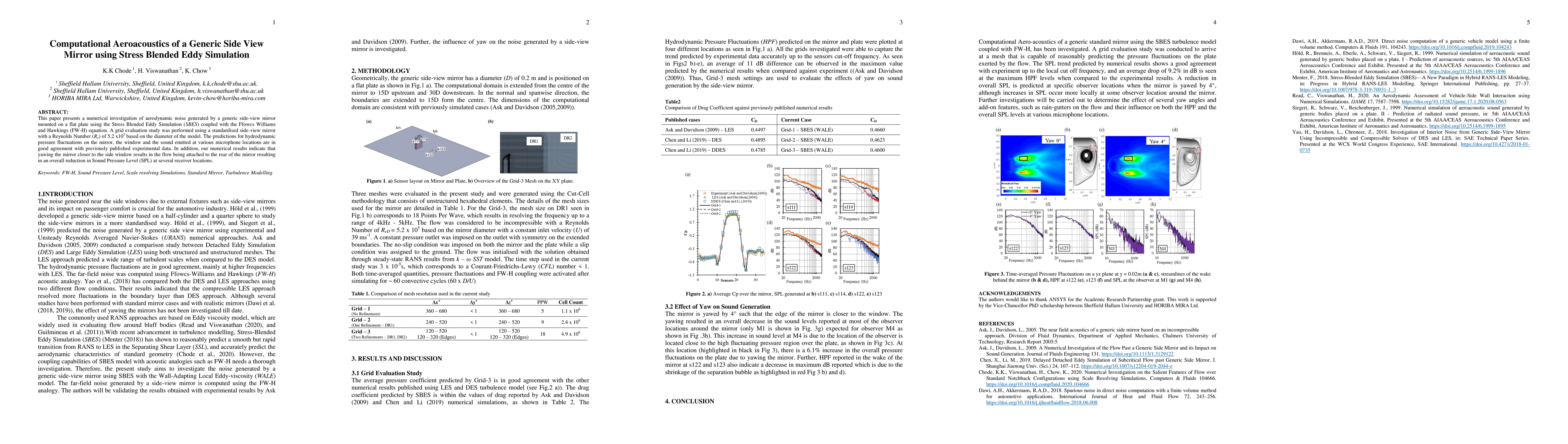 A numerical study investigates the aerodynamic noise generated by a side-view mirror using Stress Blended Eddy Simulation (SBES) and finds that yawing the mirror reduces sound pressure level at certain receiver locations.