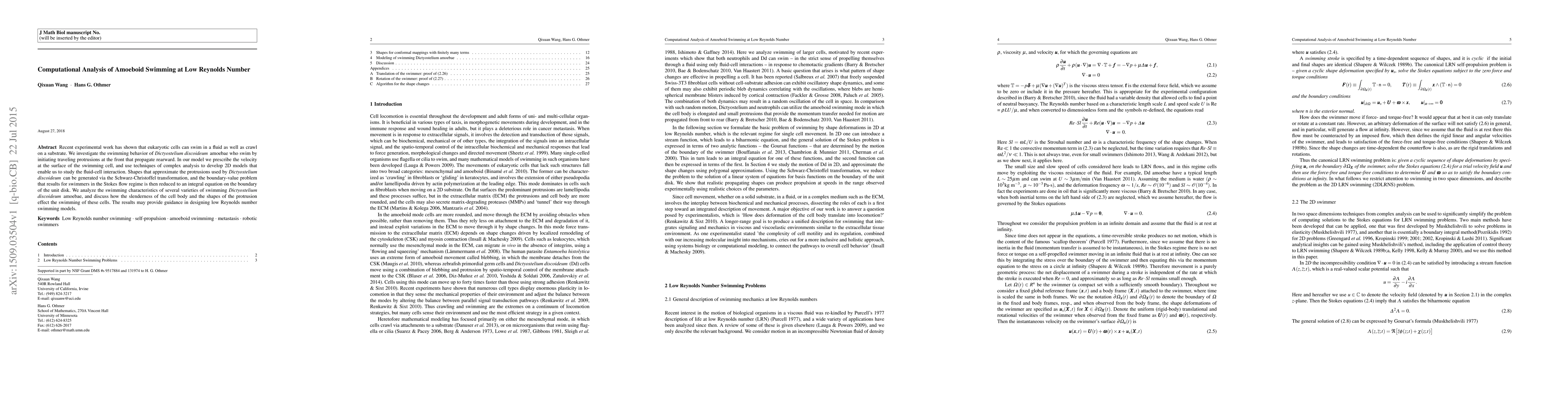 This paper computationally analyzes the swimming behavior of Dictyostelium discoideum amoebae using complex analysis techniques to model fluid-cell interactions at low Reynolds numbers. The study reveals how cell shape and protrusions influence swimming efficiency, offering insights for designing low Reynolds number swimming models.