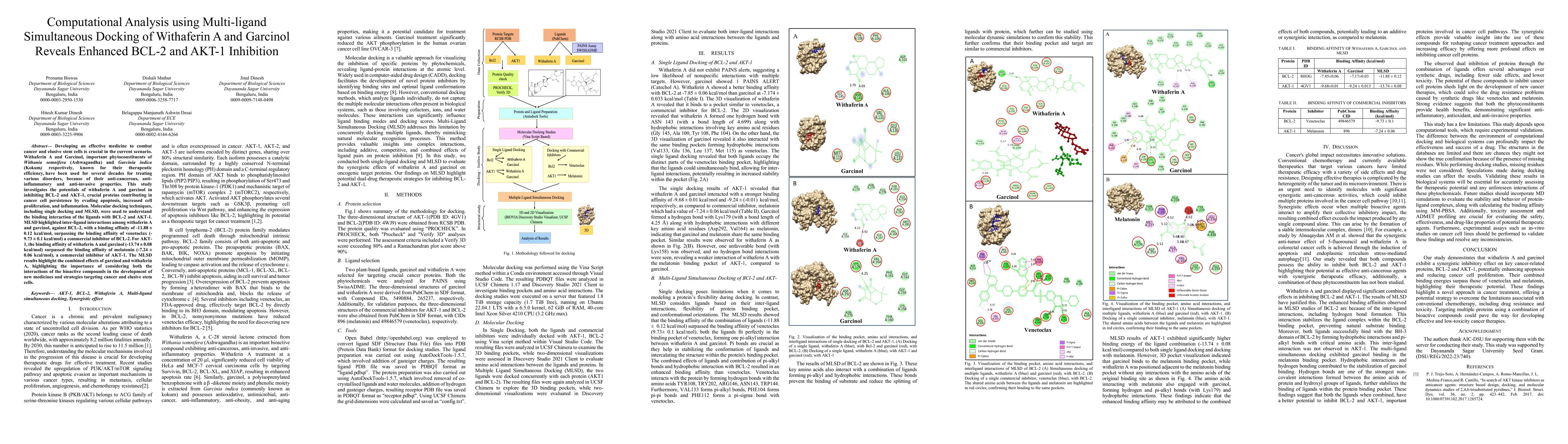 The study employed molecular docking techniques, including single docking and Multi-ligand Simultaneous Docking (MLSD), to analyze the binding interactions of Withaferin A and Garcinol with BCL-2 and AKT-1 proteins.