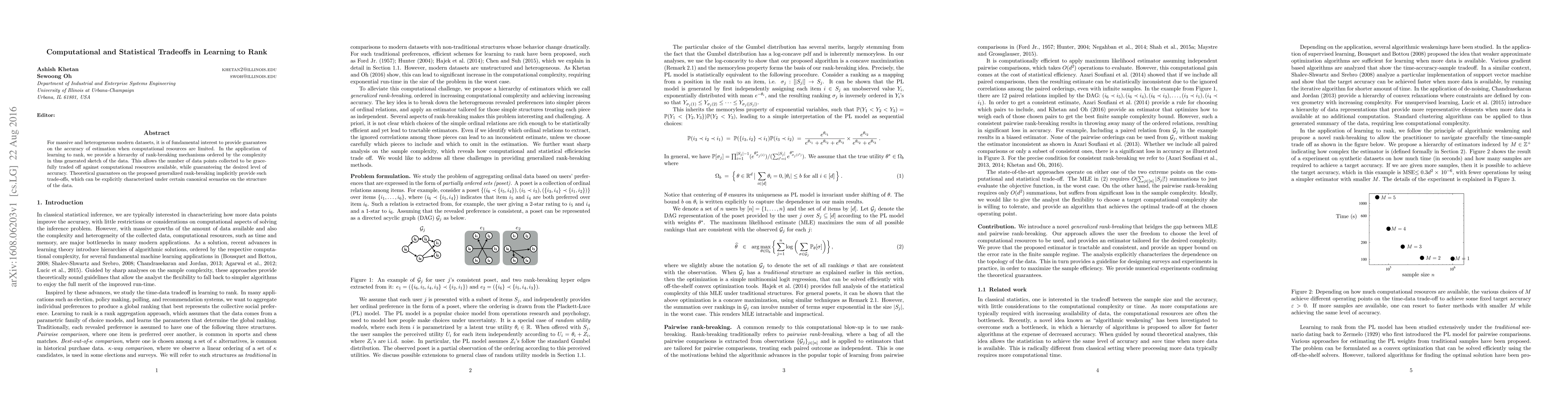 For massive and heterogeneous modern datasets, it is of fundamental interest to provide guarantees on the accuracy of estimation when computational resources are limited. In the application of learning to rank, we provide a hierarchy of rank-breaking mechanisms ordered by the complexity in thus generated sketch of the data. This allows the number of data points collected to be gracefully traded off against computational resources available, while guaranteeing the desired level of accuracy. Theoretical guarantees on the proposed generalized rank-breaking implicitly provide such trade-offs, which can be explicitly characterized under certain canonical scenarios on the structure of the data.