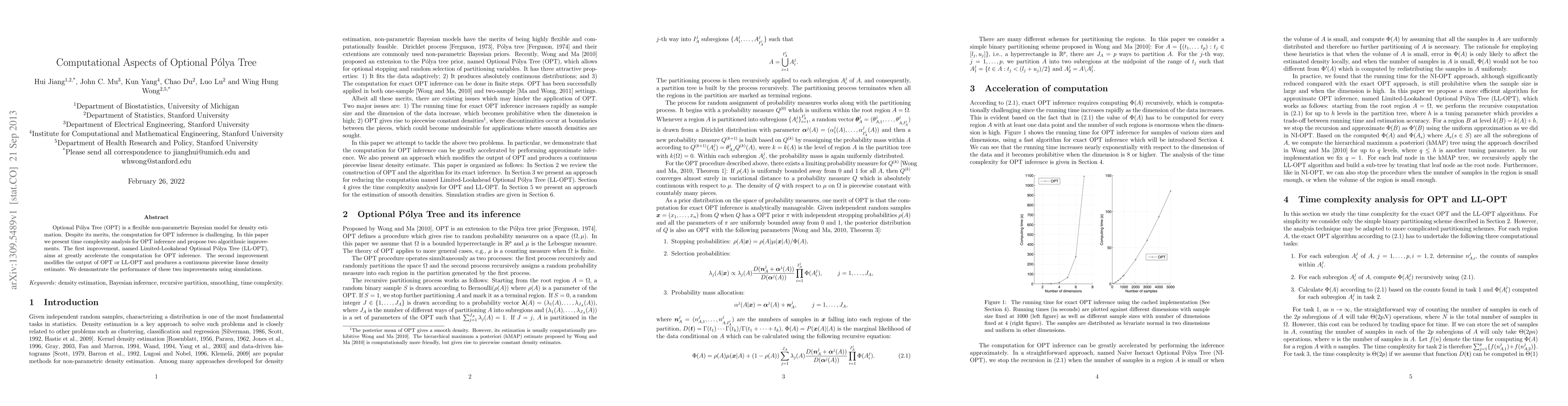 This paper analyzes the computational complexity of Optional Pólya Tree (OPT) inference and proposes two algorithmic improvements: Limited-Lookahead Optional Pólya Tree (LL-OPT) to accelerate computation and a method to produce a continuous piecewise linear density estimate. Simulation results demonstrate the effectiveness of these enhancements.