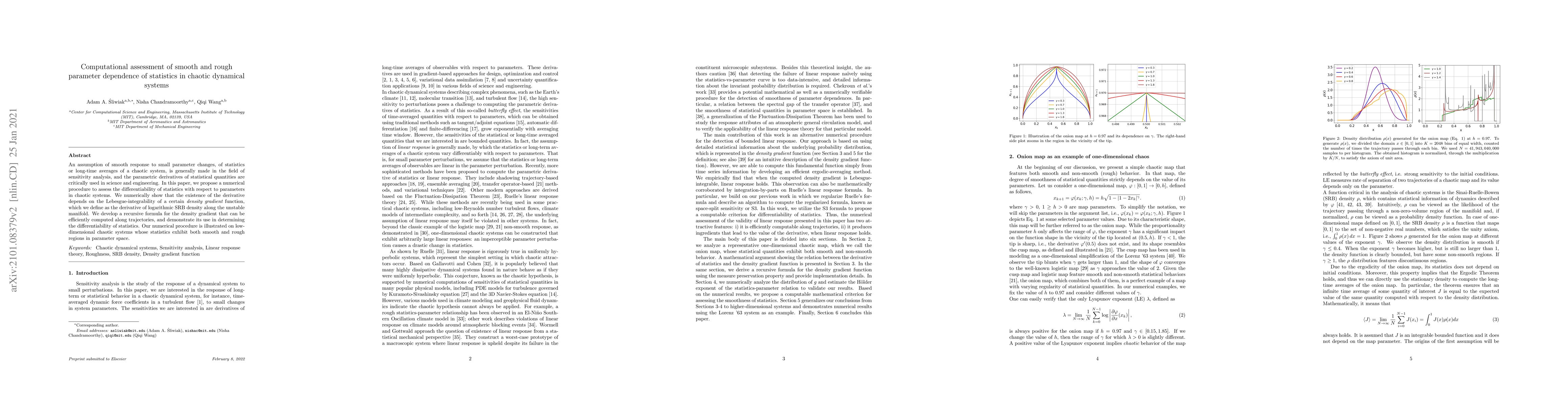 This paper proposes a numerical method to evaluate the differentiability of statistics in chaotic dynamical systems, showing that differentiability depends on the Lebesgue-integrability of a density gradient function. The authors develop a recursive formula to compute this gradient and apply it to low-dimensional chaotic systems to identify smooth and rough regions in parameter space.