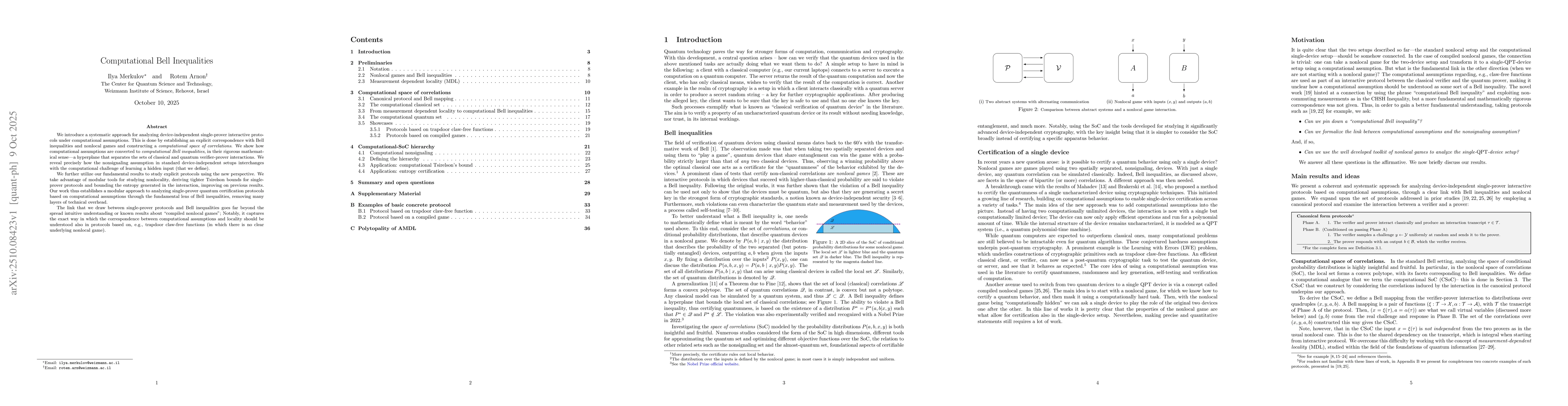 This work bridges cryptographic security with quantum information theory, enabling rigorous analysis of device-independent protocols under computational assumptions, which has implications for secure quantum communication and verification.