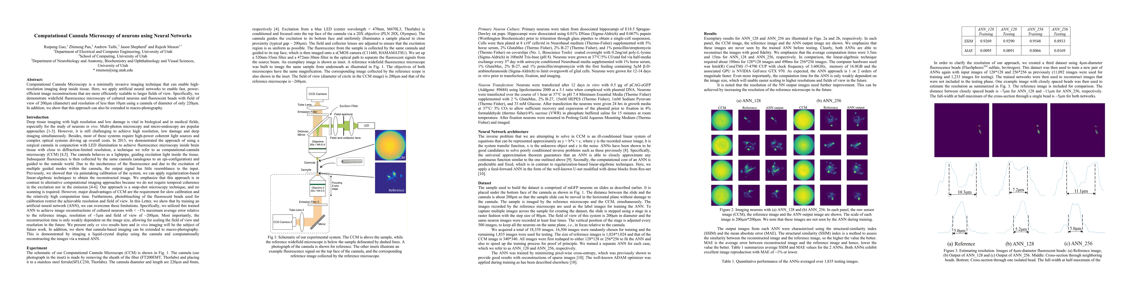 This paper introduces Computational Cannula Microscopy, a minimally invasive imaging technique that uses neural networks for fast, power-efficient image reconstructions. It demonstrates high-resolution imaging of neurons and fluorescent beads with a 200$\mu$m field of view and less than 10$\mu$m resolution through a 220$\mu$m cannula, and extends the method to macro-photography.