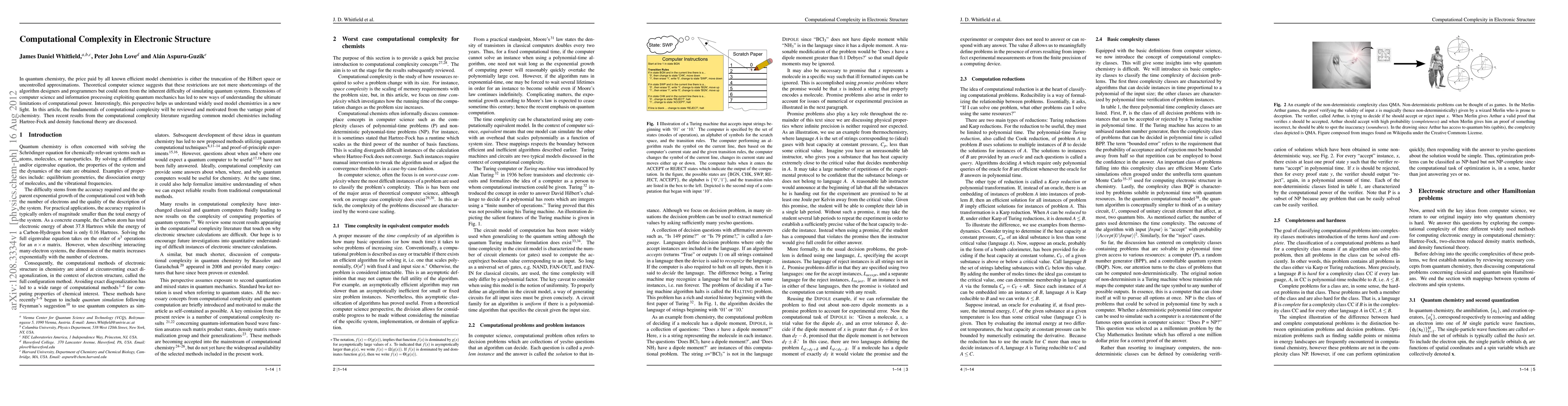In quantum chemistry, the price paid by all known efficient model chemistries is either the truncation of the Hilbert space or uncontrolled approximations. Theoretical computer science suggests that these restrictions are not mere shortcomings of the algorithm designers and programmers but could stem from the inherent difficulty of simulating quantum systems. Extensions of computer science and information processing exploiting quantum mechanics has led to new ways of understanding the ultimate limitations of computational power. Interestingly, this perspective helps us understand widely used model chemistries in a new light. In this article, the fundamentals of computational complexity will be reviewed and motivated from the vantage point of chemistry. Then recent results from the computational complexity literature regarding common model chemistries including Hartree-Fock and density functional theory are discussed.