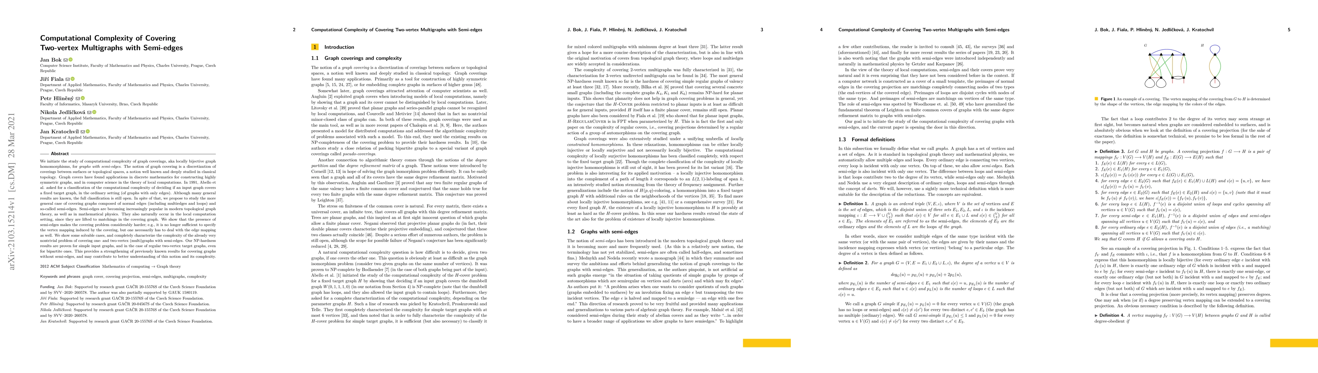 Researchers studied the computational complexity of covering two-vertex multigraphs with semi-edges, finding that it is much harder than covering graphs without semi-edges and providing new insights into graph coverings and local computations.