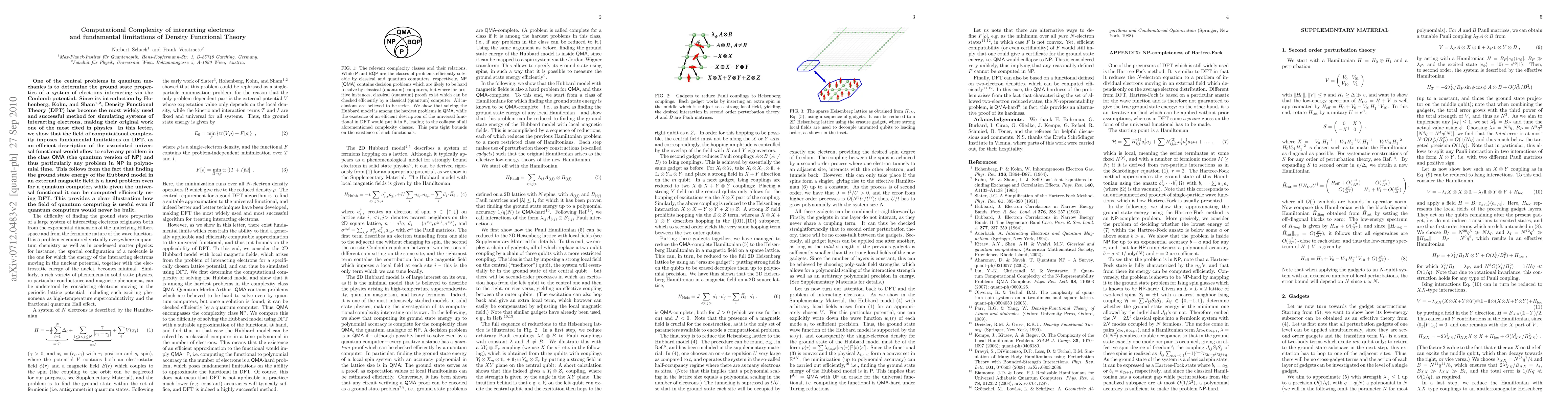One of the central problems in quantum mechanics is to determine the ground state properties of a system of electrons interacting via the Coulomb potential. Since its introduction by Hohenberg, Kohn, and Sham, Density Functional Theory (DFT) has become the most widely used and successful method for simulating systems of interacting electrons, making their original work one of the most cited in physics. In this letter, we show that the field of computational complexity imposes fundamental limitations on DFT, as an efficient description of the associated universal functional would allow to solve any problem in the class QMA (the quantum version of NP) and thus particularly any problem in NP in polynomial time. This follows from the fact that finding the ground state energy of the Hubbard model in an external magnetic field is a hard problem even for a quantum computer, while given the universal functional it can be computed efficiently using DFT. This provides a clear illustration how the field of quantum computing is useful even if quantum computers would never be built.