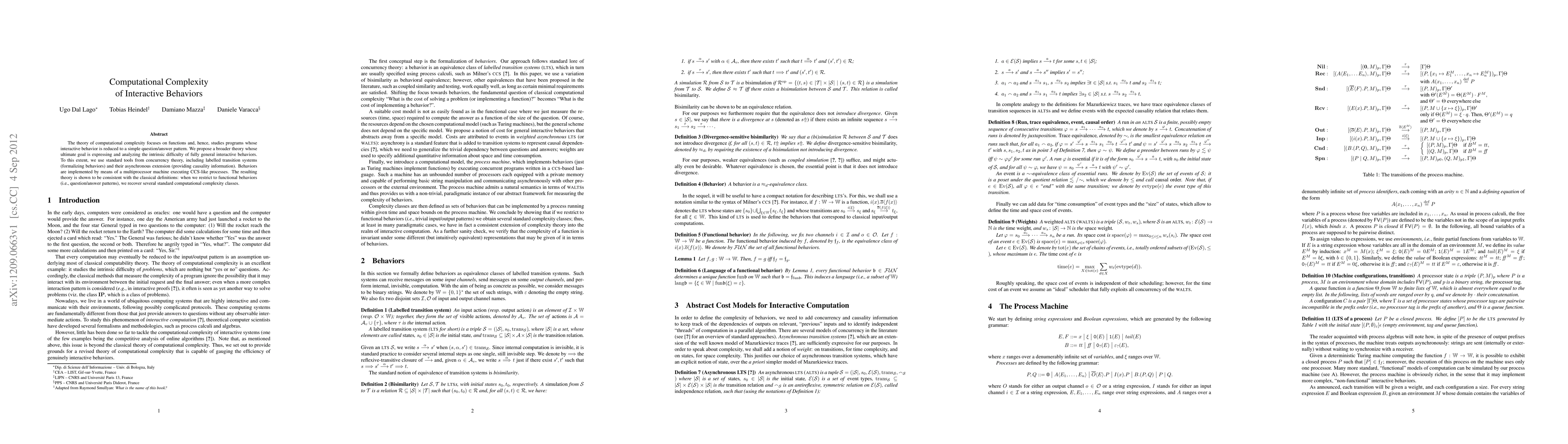 This paper proposes a new theoretical framework for analyzing the computational complexity of fully general interactive behaviors, extending beyond simple question/answer patterns. It employs tools from concurrency theory and multiprocessor machine models to formalize and evaluate the intrinsic difficulty of these behaviors, while still aligning with classical complexity classes for functional behaviors.