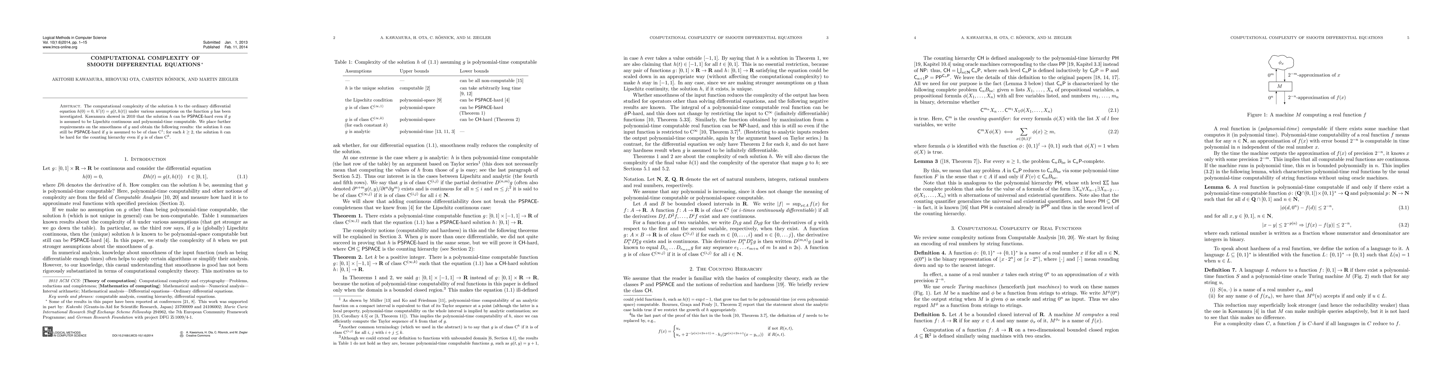 The computational complexity of the solutions $h$ to the ordinary differential equation $h(0)=0$, $h'(t) = g(t, h(t))$ under various assumptions on the function $g$ has been investigated. Kawamura showed in 2010 that the solution $h$ can be PSPACE-hard even if $g$ is assumed to be Lipschitz continuous and polynomial-time computable. We place further requirements on the smoothness of $g$ and obtain the following results: the solution $h$ can still be PSPACE-hard if $g$ is assumed to be of class $C^1$; for each $k\ge2$, the solution $h$ can be hard for the counting hierarchy even if $g$ is of class $C^k$.