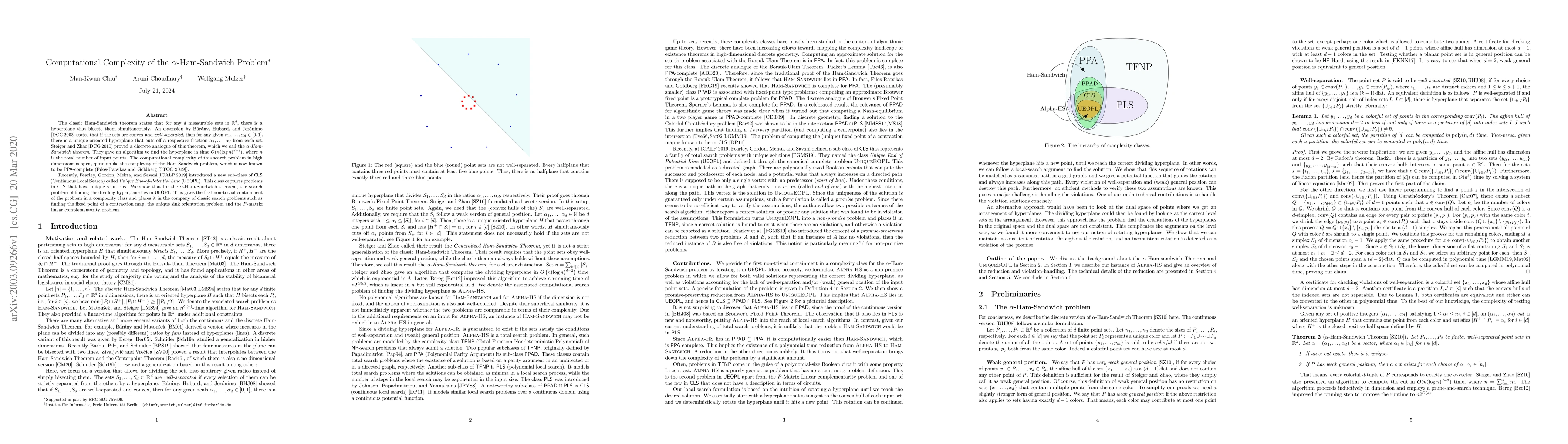 The classic Ham-Sandwich theorem states that for any $d$ measurable sets in $\mathbb{R}^d$, there is a hyperplane that bisects them simultaneously. An extension by B\'ar\'any, Hubard, and Jer\'onimo [DCG 2008] states that if the sets are convex and \emph{well-separated}, then for any given $\alpha_1, \dots, \alpha_d \in [0, 1]$, there is a unique oriented hyperplane that cuts off a respective fraction $\alpha_1, \dots, \alpha_d$ from each set. Steiger and Zhao [DCG 2010] proved a discrete analogue of this theorem, which we call the \emph{$\alpha$-Ham-Sandwich theorem}. They gave an algorithm to find the hyperplane in time $O(n (\log n)^{d-3})$, where $n$ is the total number of input points. The computational complexity of this search problem in high dimensions is open, quite unlike the complexity of the Ham-Sandwich problem, which is now known to be PPA-complete (Filos-Ratsikas and Goldberg [STOC 2019]). Recently, Fearley, Gordon, Mehta, and Savani [ICALP 2019] introduced a new sub-class of CLS (Continuous Local Search) called \emph{Unique End-of-Potential Line} (UEOPL). This class captures problems in CLS that have unique solutions. We show that for the $\alpha$-Ham-Sandwich theorem, the search problem of finding the dividing hyperplane lies in UEOPL. This gives the first non-trivial containment of the problem in a complexity class and places it in the company of classic search problems such as finding the fixed point of a contraction map, the unique sink orientation problem and the $P$-matrix linear complementarity problem.