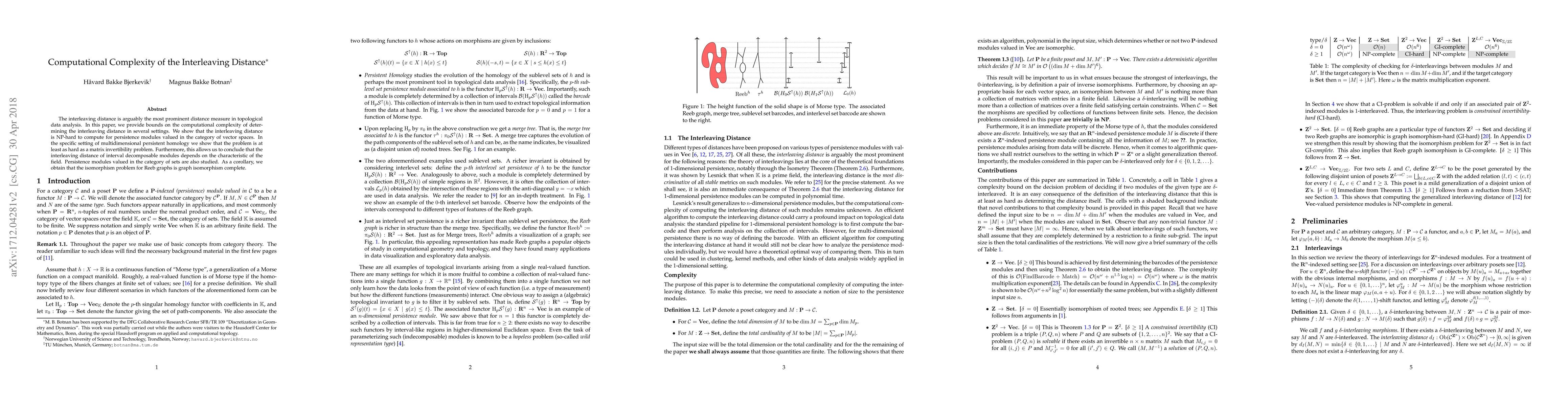 This paper investigates the computational complexity of determining the interleaving distance in topological data analysis, proving it to be NP-hard for vector space valued persistence modules and relating it to matrix invertibility in multidimensional persistent homology. It also shows that the interleaving distance of interval decomposable modules depends on the field's characteristic.