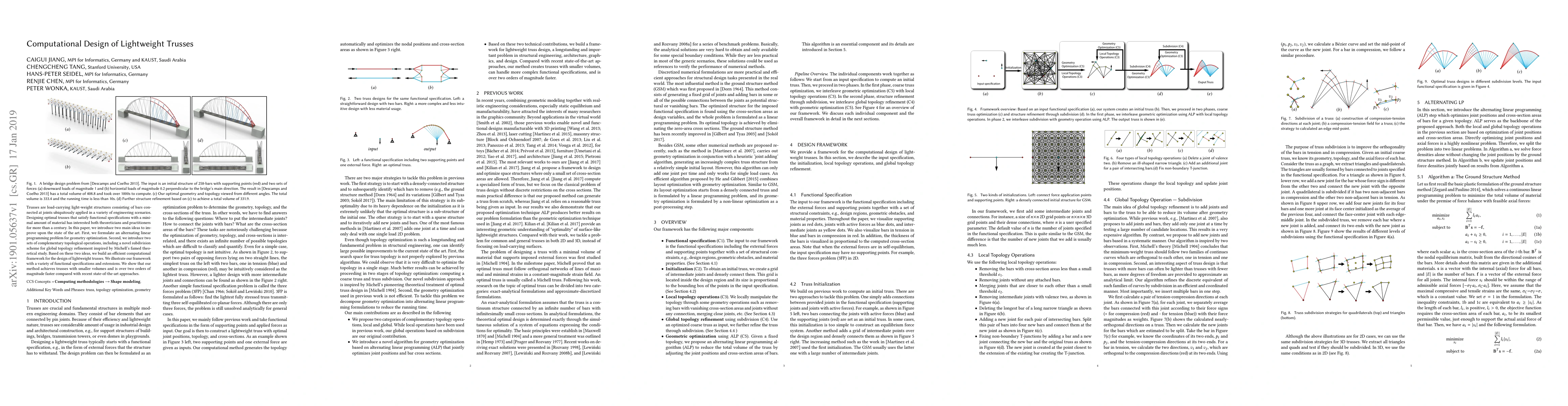 This paper presents a computational framework for optimizing the design of lightweight trusses through an alternating linear programming problem and novel topological operations, including a subdivision scheme. The proposed method significantly reduces truss volume and improves computational efficiency over existing state-of-the-art approaches.