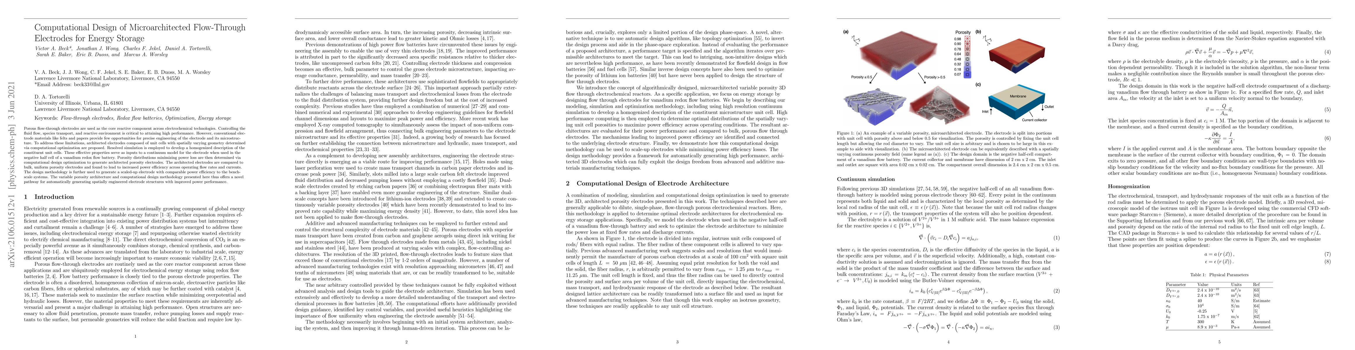 This paper proposes computational design of microarchitected flow-through electrodes for energy storage, optimizing spatially varying geometry to enhance performance in electrochemical technologies. The architected electrodes show increased power efficiency compared to conventional bulk electrodes, demonstrating a novel pathway for generating high-performance electrode structures.