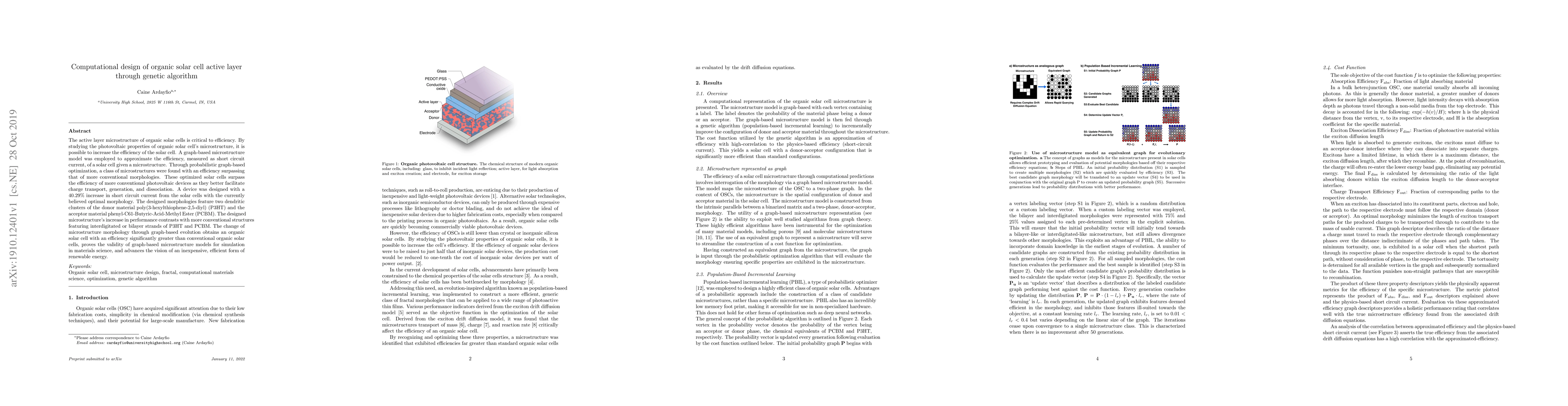The active layer microstructure of organic solar cells is critical to efficiency. By studying the photovoltaic properties of organic solar cell's microstructure, it is possible to increase the efficiency of the solar cell. A graph-based microstructure model was employed to approximate the efficiency, measured as short circuit current, of a solar cell given a microstructure. Through probabilistic graph-based optimization, a class of microstructures were found with an efficiency surpassing that of more conventional morphologies. These optimized solar cells surpass the efficiency of more conventional photovoltaic devices as they better facilitate charge transport, generation, and dissociation. A device was designed with a 40.29% increase in short circuit current from the solar cells with the currently believed optimal morphology. The designed morphologies feature two dendritic clusters of the donor material poly(3-hexylthiophene-2,5-diyl) (P3HT) and the acceptor material phenyl-C61-Butyric-Acid-Methyl Ester (PCBM). The designed microstructure's increase in performance contrasts with more conventional structures featuring interdigitated or bilayer strands of P3HT and PCBM. The change of microstructure morphology through graph-based evolution obtains an organic solar cell with an efficiency significantly greater than conventional organic solar cells, proves the validity of graph-based microstructure models for simulation in materials science, and advances the vision of an inexpensive, efficient form of renewable energy.